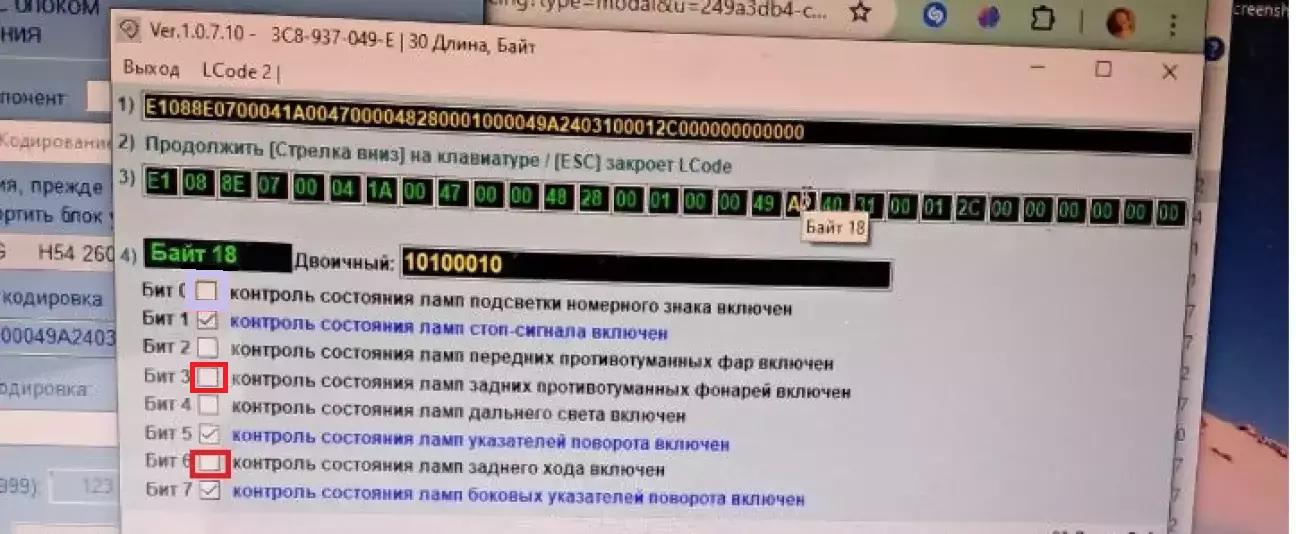 Байт 18-тий потім 0-вий та 6-тий біт знімаємо галочку