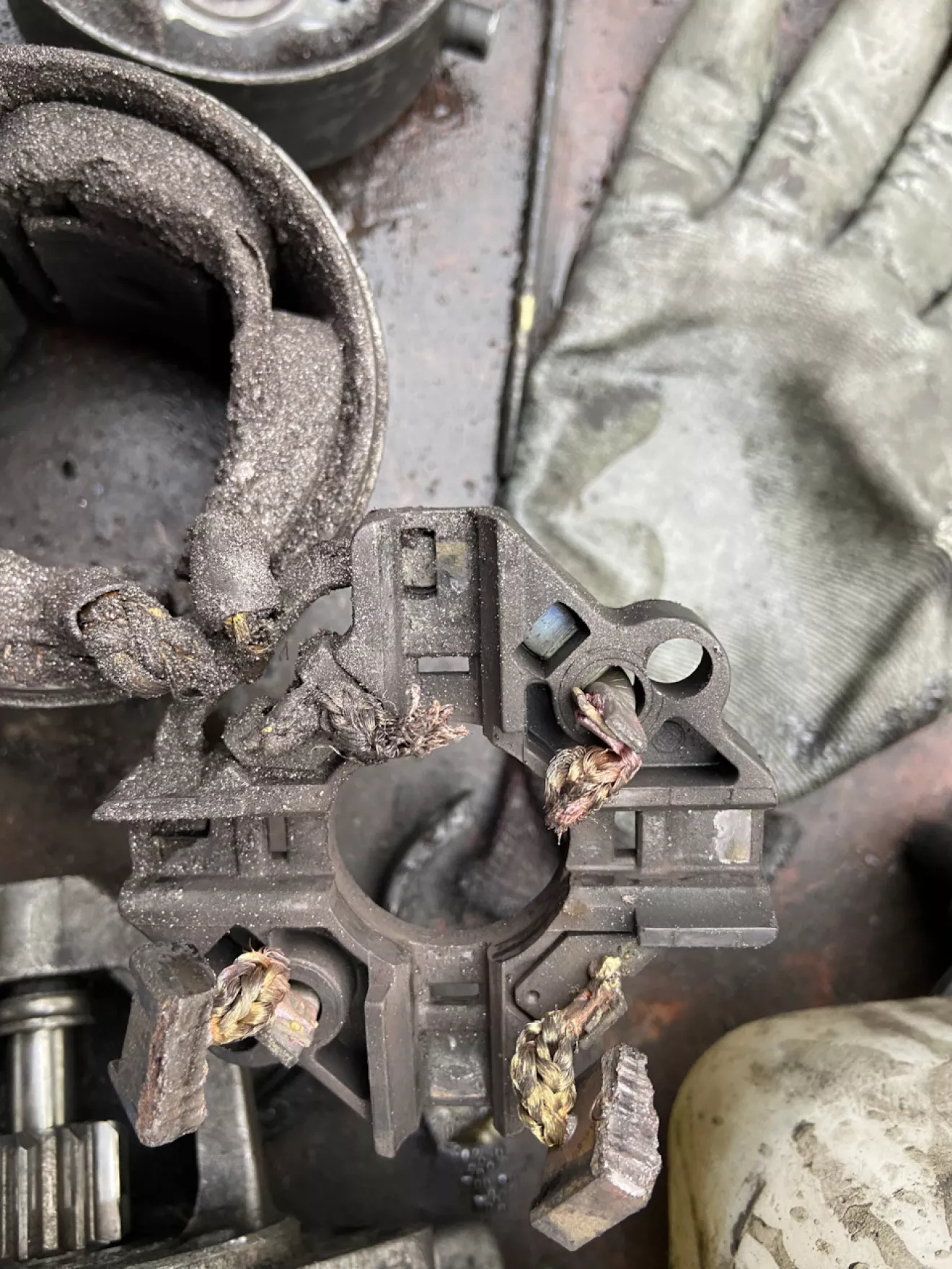 Поехал попить с женой кофе, на выезде заметил, что товарищ стартер нехотя запустил мотор, я не предал этому особого значения. После прогулки я с супругой устремился к трактору в предвкушении хорошего вина и интересного кинца, но стартер решил по другому — просто замолчал, предательски замолчал… сначала думал на селектор, потом думал за аккумулятор ( он в итоге тоже «при смерти») но вспомнив запуск мотора дома и телефонную консультацию бывшего владельца «постучать и все паедет б.ябуду» понял, что пора искать эякулятор. Затащили тачку на сервак, с утра разобрали, отдали на ремонт. Вскрыв стартер все стало ясно. — постучать надо было по другом месту. Разбираться в том, кто плохо отремонтировал его ранее, или приукрасил его профилактику — выбросил его к чертям и заказал новый. Взял Car Go 112440, по рекомендации сервисменов. Попутно поменял втулки тяги селектора, ну точнее не поменял, а поставил — на стороне коробки резинки не было вовсе.