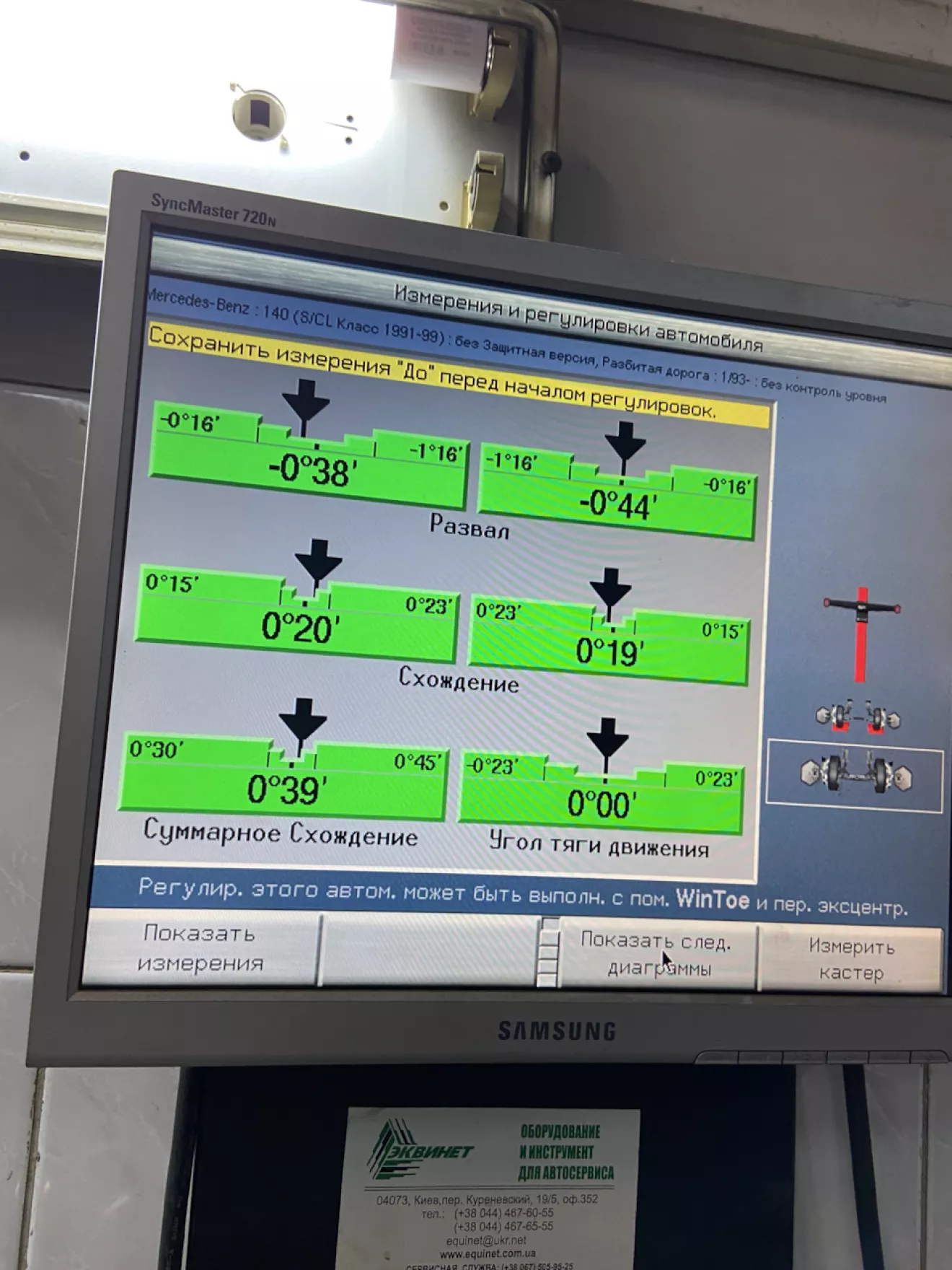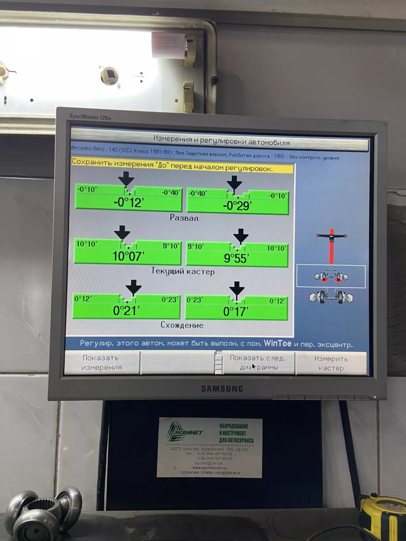 Доброго всем дня! Сегодня поехал ставить зимнюю резину, отбалансировали колеса, перепроверили развал. На удивление все крепежи крутились хорошо, привет бывшему владельцу!) Единственное, что вызвало нюанс — измерение клиренса задней подвески, для чего нужен специальный прибор, которого, понятное дело, нет. Потому данные по клиренсу вводили рассчетные)