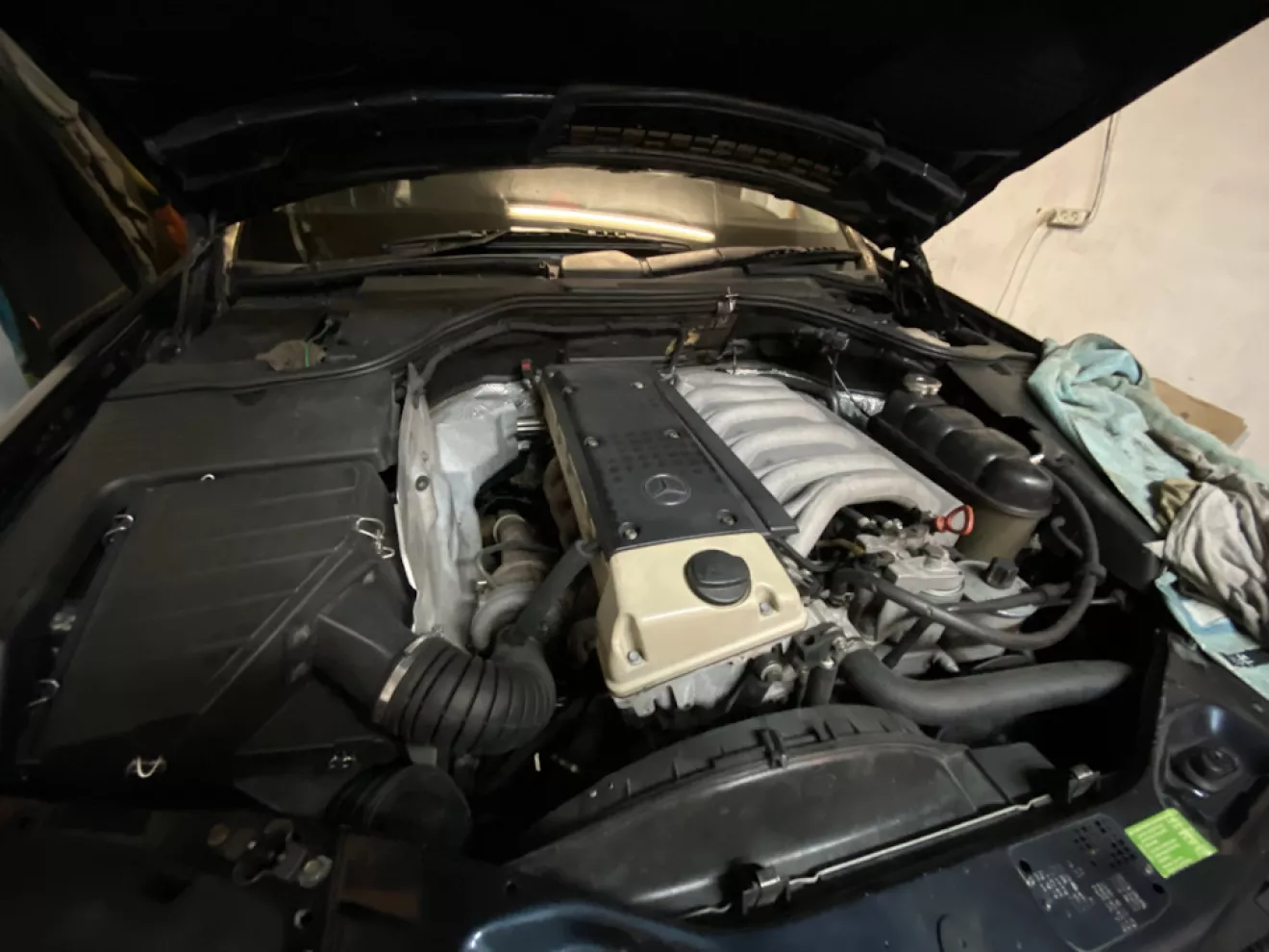 Всем здрасте! Дмитрий, бывший владелец, сразу при осмотре сказал, что подходит время обслуживать, потому я долго не тянул — купил масло (да, это опять Kroon Oil), фильтры все, и взято много ветоши, так как оставить гряз под капотом этой машины считается смертным грехом. Очень боялся завоздушить топливную систему, но все получилось довольно гладко — заполнил солярой фильтр, подставил его на место и еще дополнительно шприцем добавил соляры в отверстие, куда закручивается полый болт, крепящий топливный фильтр — машина даже не затроила. в двигатель было залито 7.5 литров масла, очень удивило наличие стальной защиты поддона и пластикового пыльника АКПП — такое встретишь нечасто. Также с бензинового мерса были переставлены регистратор, магнитола и диски.