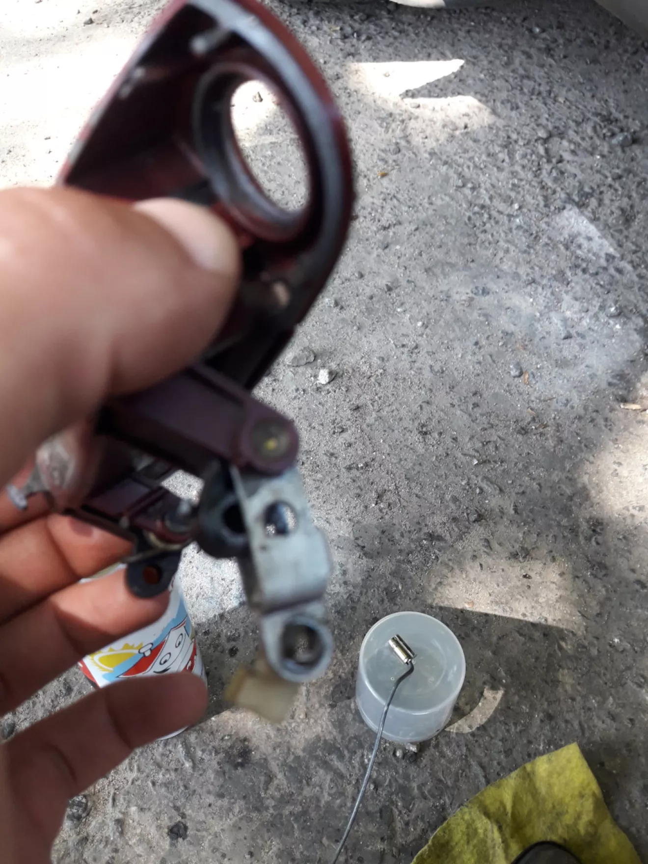 Ну вот, наружная часть ручки зашевелилась, мы повторно проверяем, перевели ли мы рычаг открытия в "самое верхнее" положение и аккуратно, не сдирая краску (как я) вынимаем наружную часть ручки.