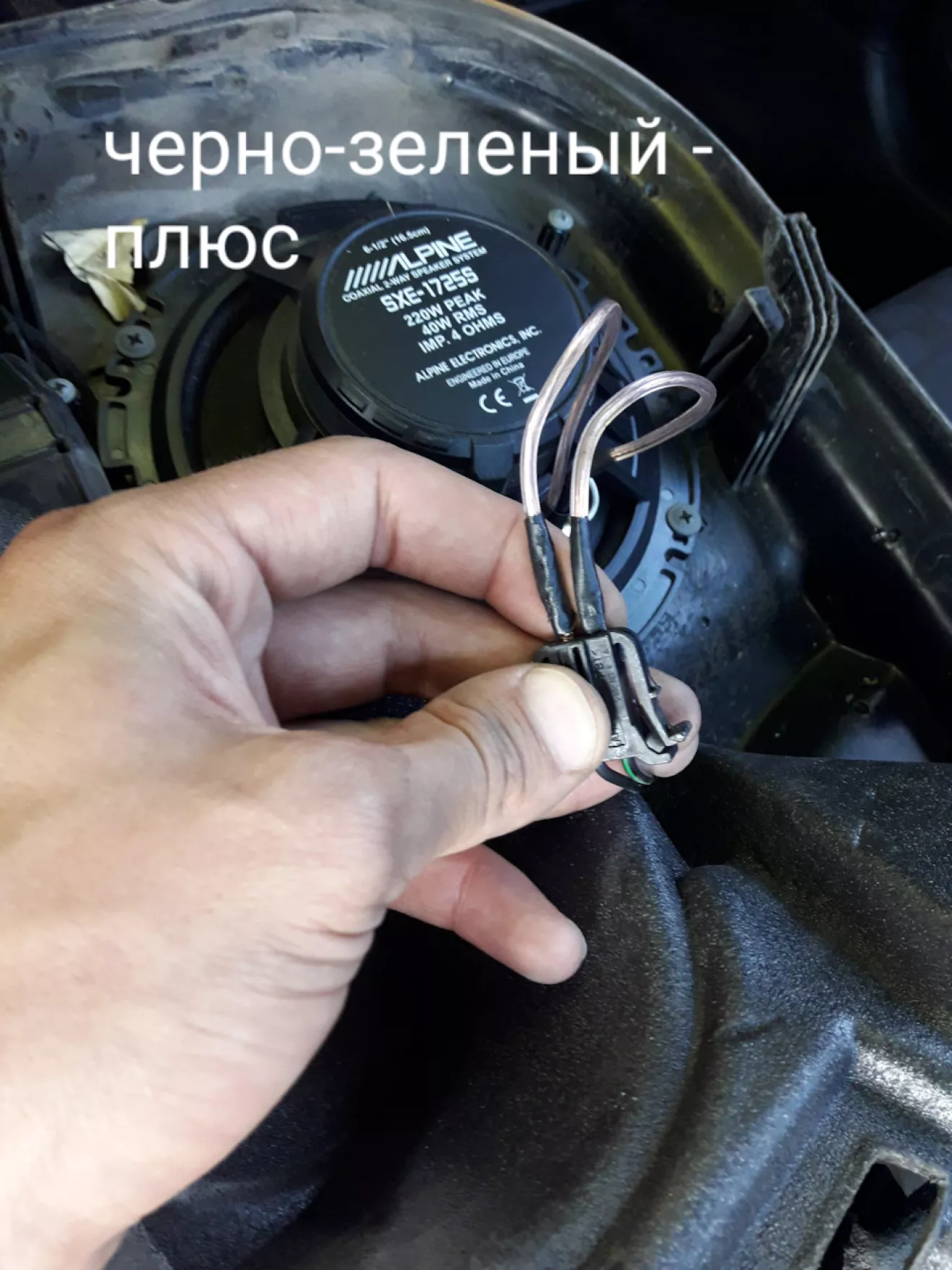 Плюсом к этому хочу вспомнить про проведенные ранее работы по замене динамиков. Родные дины подгнили, были отданы в ремонт, на их место "временно" стали динамики фирмы "Alpine", да так и остались. главный вопрос состоял в правильном подключении полярности динамиков, так как на родных нет пометки "+" и "-".