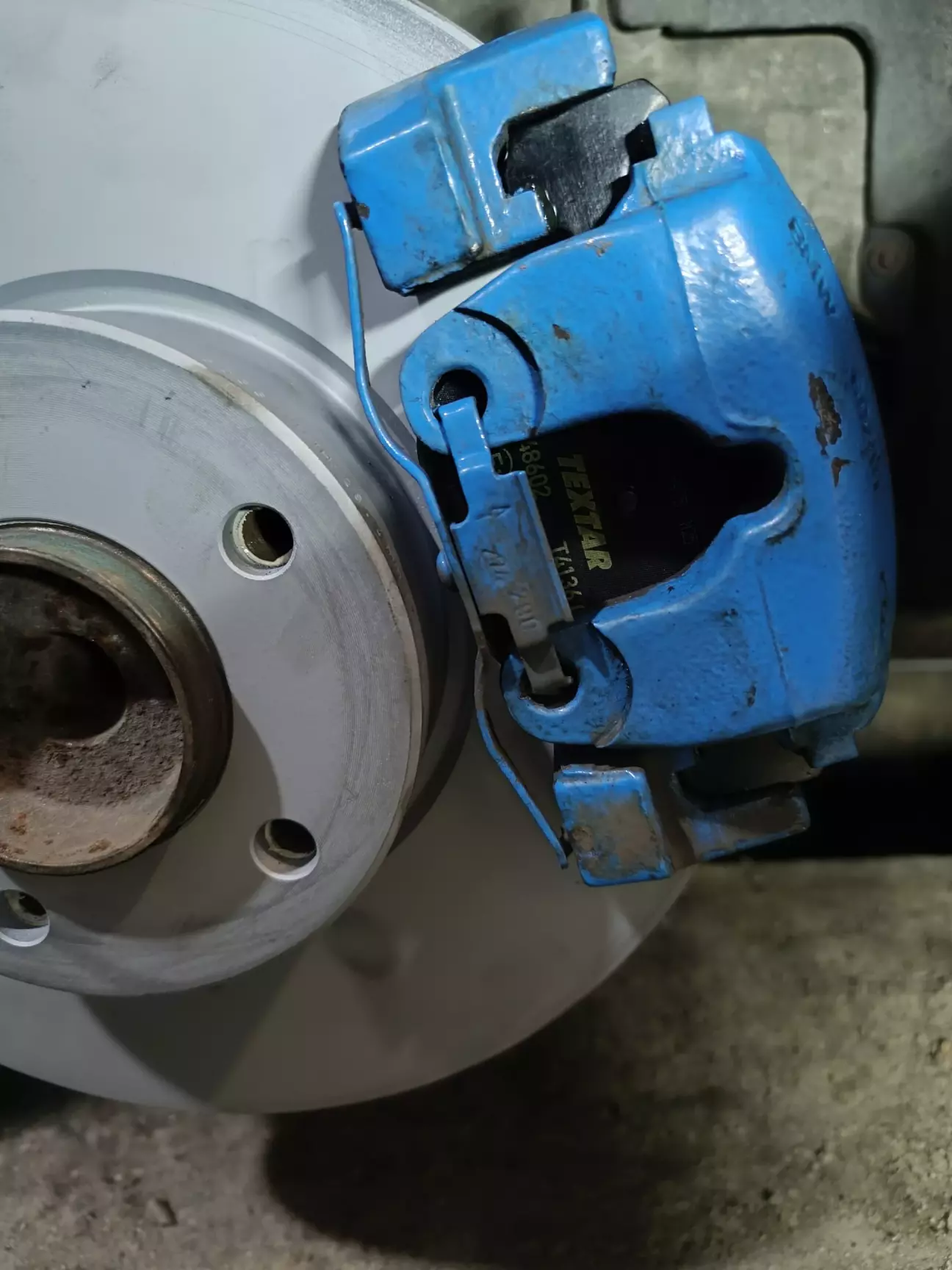 Всі привіт , загорілась на приборці сповіщення що закінчилися колодки , я відразу вирішив що це задні так як з моменту купівлі передні я замінили відразу а задні не чипав там був залишок 50% , зняв колесо в там все норм і датчик цілий , зняв переднье а там майже метал , заміряв диски вони були вже менше допуска на 2мм . Тож вирішив повністю обслужити передні гальма .