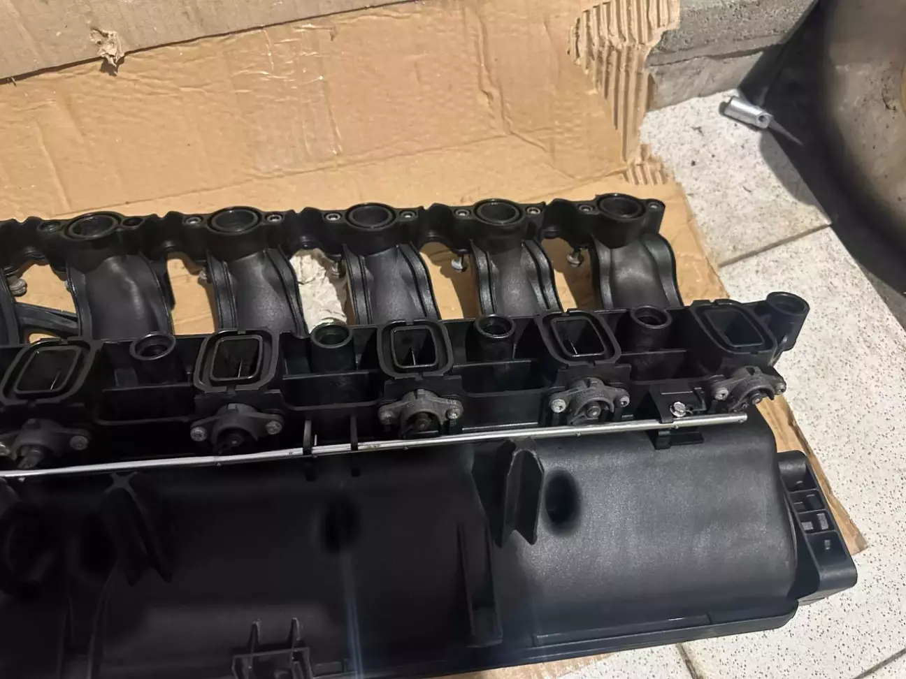 Після ТО не довго я поїздив з посмішкою . Почались перші проблеми , при 2500 обертів чути що десь виходить наддув на вулицю, можливо тижень шукав проблему , замінив хомути всі на патрубки інтеркулера ( не помогло ) . Посадив товариша за кермо , а сам почав шукати під капотом причину , знайшов що розійшовся по шву впускний коллектор , було придбано б/у впускний колектор з славнозвісними " вихровими заслонками" за 2000грн, також замовлений комплект для " Заглушки вихрових заслонок " разом з прокладками впускного колектора за 700 грн , патрубок інтеркулера 700грн та робота 1500грн по заміні , також паралельно поміняли вакуумні шланги. Також з поваги до чужої роботи був вимитий б/у впускний колектор до стану нового та демонтовані ( вихрові заслонки) щоб майстру було приємно працювати і не марнував свій час на мийку колектора