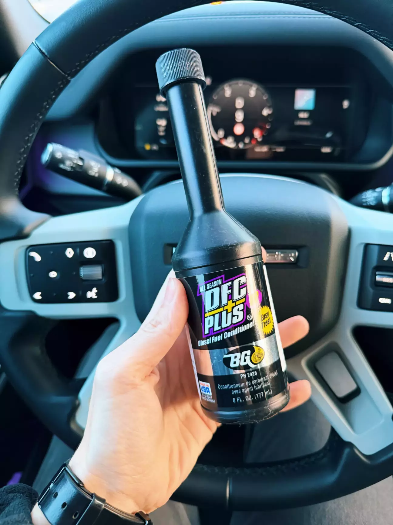 Ще таку штуку купила: кондиціонер дизпалива + антигель. З інструкції: Захищає деталі паливної системи від «сухої солярки», очищує паливні інжектори, нейтралізує вологу і запобігає замерзанню дизпалива, захищає деталі від іржі і корозії.