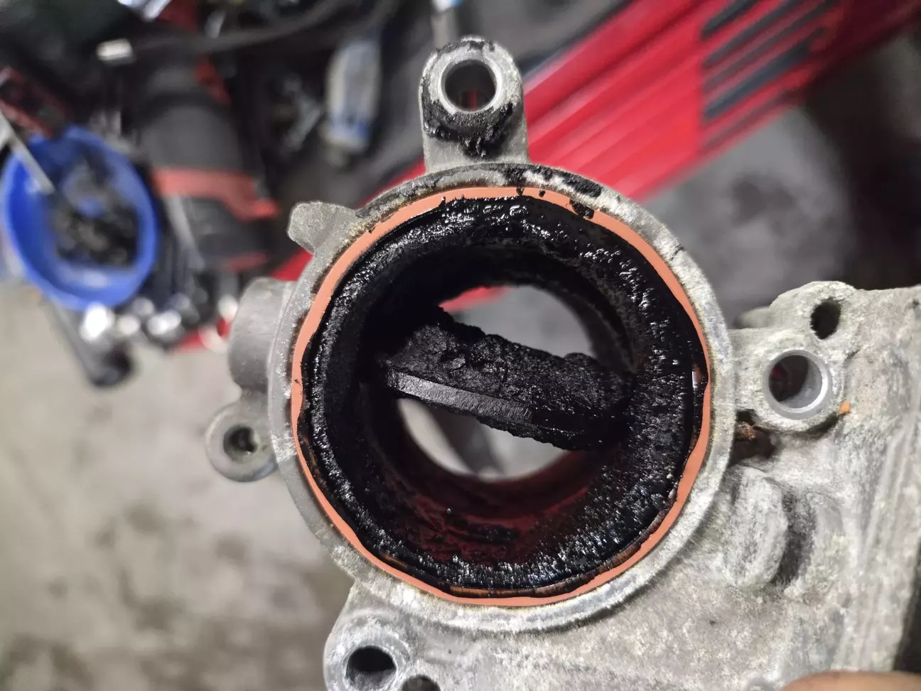 Ще треба відпустит 2 гвинти пластикової трубки, яка вставляється в термостат і йде вздовж двигуна, аж до охолоджувача егр.