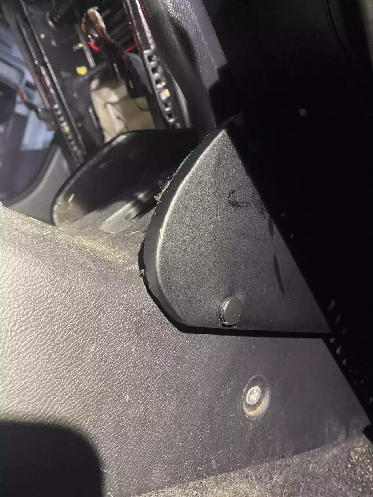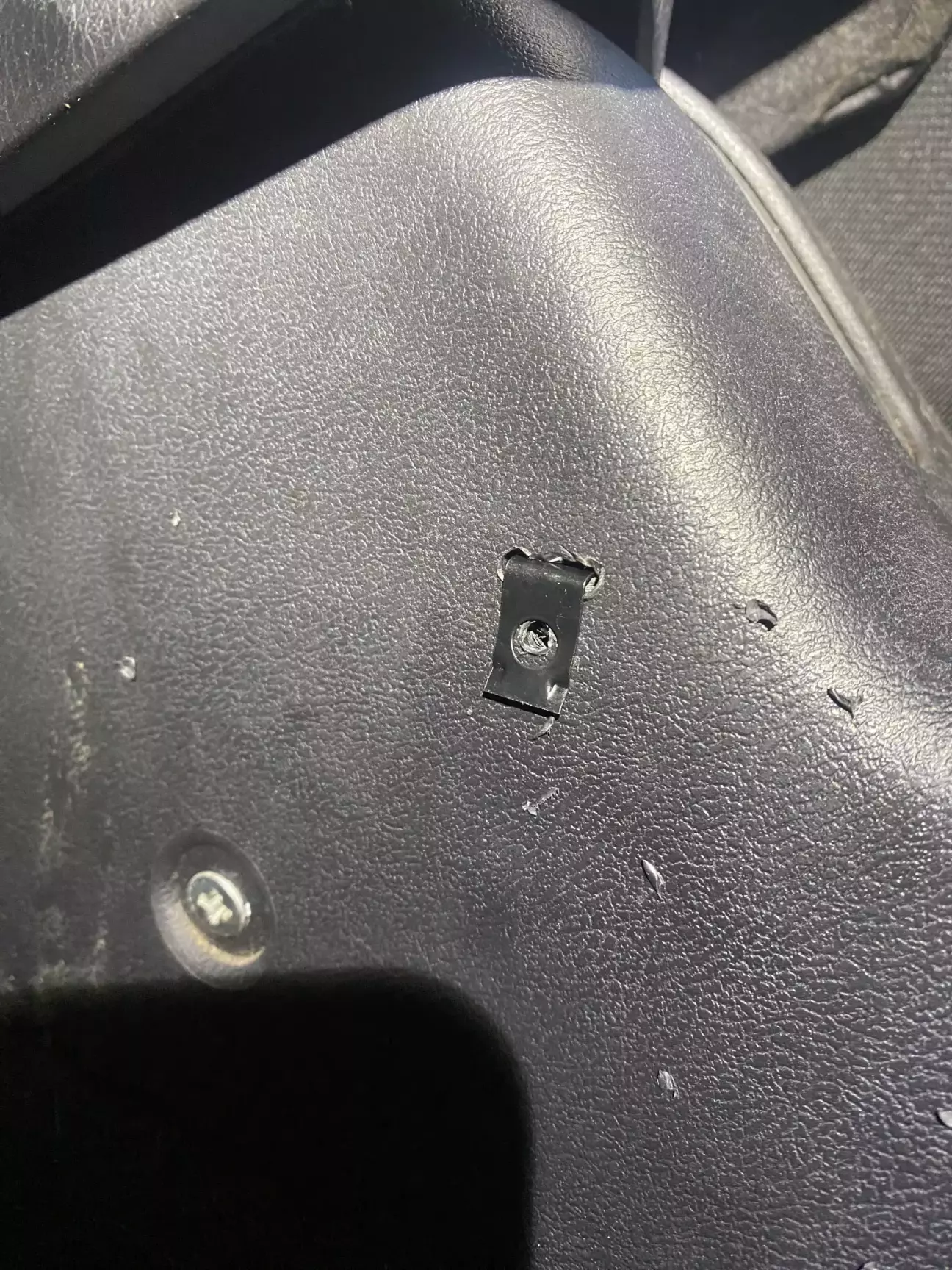 Намітив його місце, зробив 4 отвори ( прийшлось відкручувати сидіння). Щоб надійніше трималось вставив закладні для саморізів