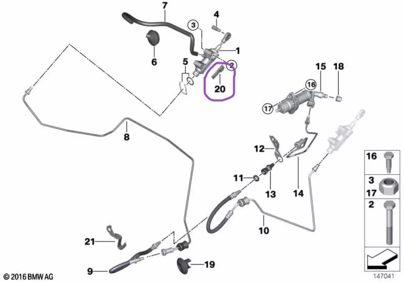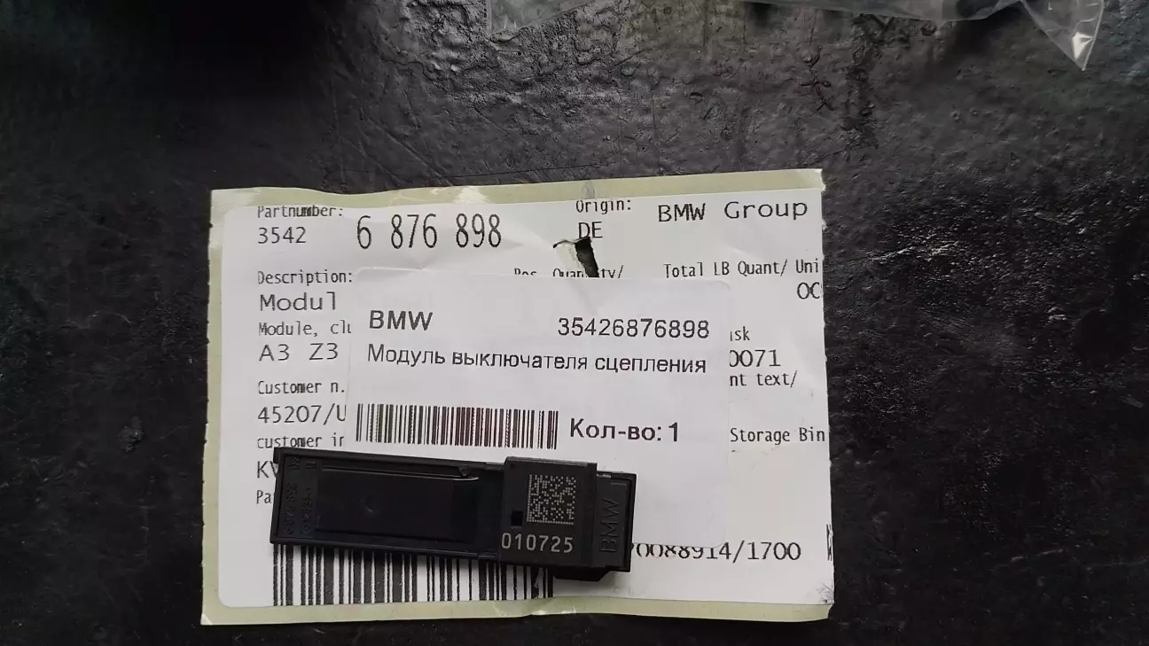 Діагностика показала, що вийшов з ладу датчик, який визначає положення педалі зчеплення. Дана оригінальна запчастина BMW призначена для управління функціями, пов'язаними з педаллю зчеплення, такими як блокування стартера і круїз-контроль (Tempomat) BMW 35426876898