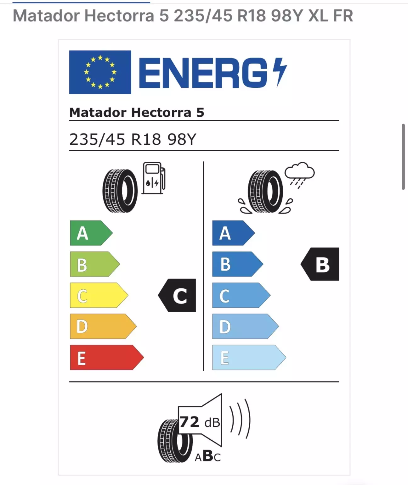 1. Літні шини Matador Hectorra 5 235/45 R18 98Y XL FR.