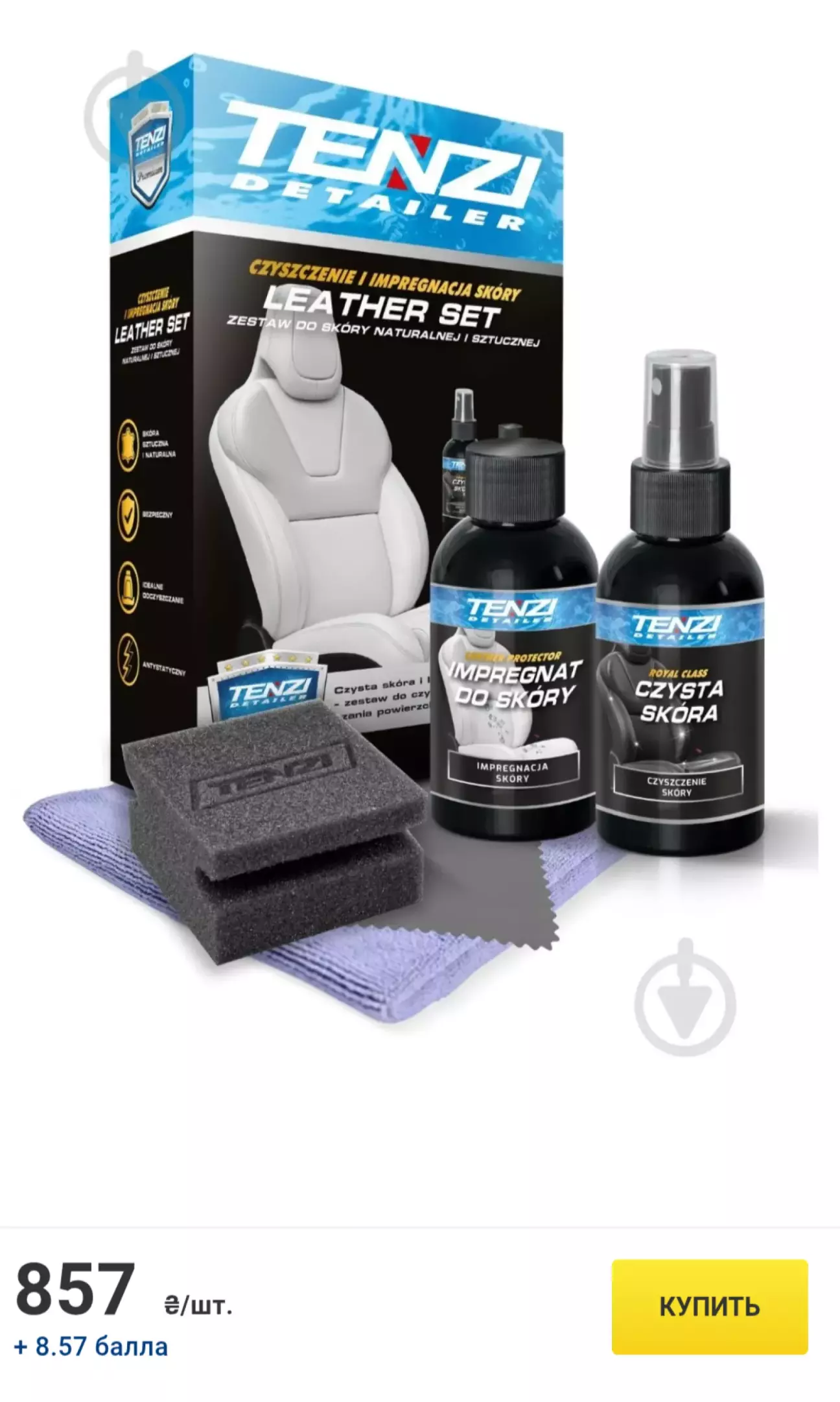 Нічого складного, спочатку очисником почистив, дав висохнути , протер і далі вже засобом для догляду за шкірою, обробив накладки на дверях і підлокітник ( воно підходить і для штучної шкіри).