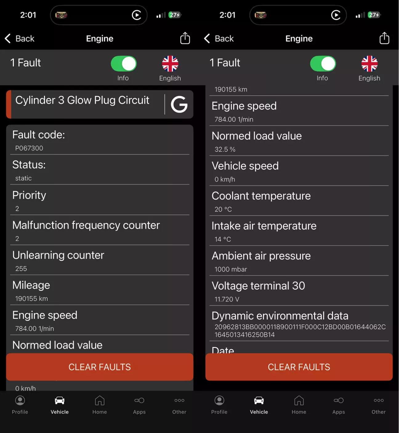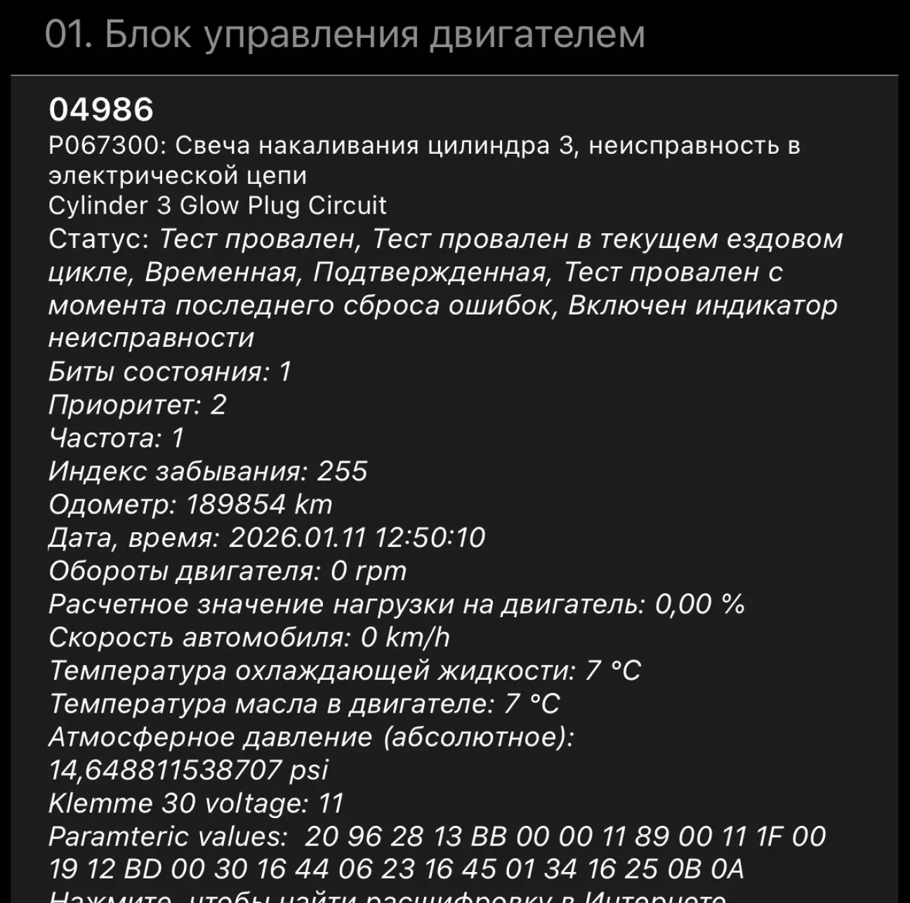 І так помилка по 3-му циліндру, щось там із свічкою накалу. Ну що ж, вже час прийшов робити ТО, тому все одно їхати на сервіс. Помилку скинув, поки не повернулась, але думаю додатково оглянути все ж треба буде нормально все на сервісі. Я не знаю скільки вони ходять і який в них регламент заміни, може вже час?