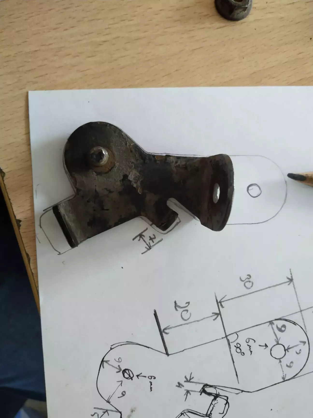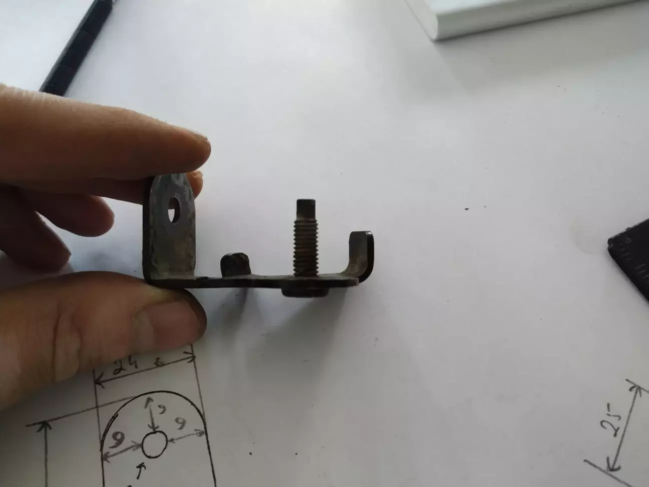 заміни важелів підвіски, виявив відсутність кронштейна кріплення датчика положення кузова. Оскільки він кріпиться до важеля, то ї після заміни він так і залишився на старому важелі. Забрати з СТО не вдалося, тому що помітив цей момент не відразу, а коли виїхав вночі. Тепер я їжджу тільки використовуючи задній коректор, передній відключив, але це тимчасове рішення. Загалом, суть питання, чим можна замінити цей кронштейн, а краще виготовити новий, але для цього потрібні розміри. Може, у кого була подібна проблема і є рішення? В ідеалі креслення кронштейна з розмірами!