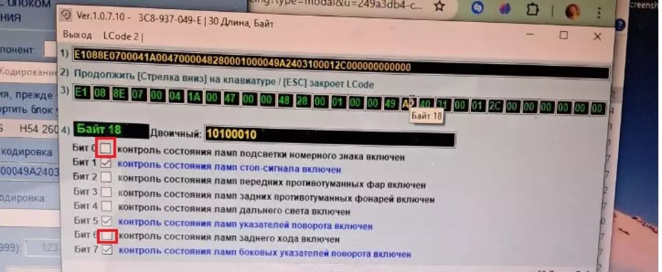 Байт 18-тий потім 0-вий та 6-тий біт знімаємо галочку