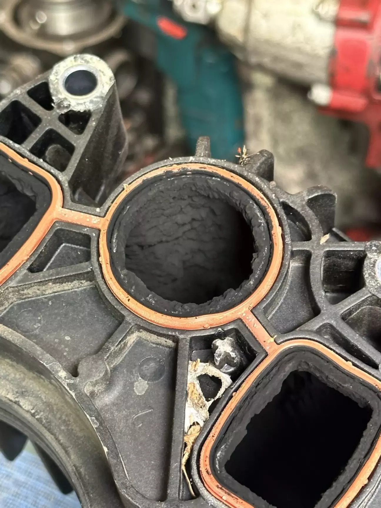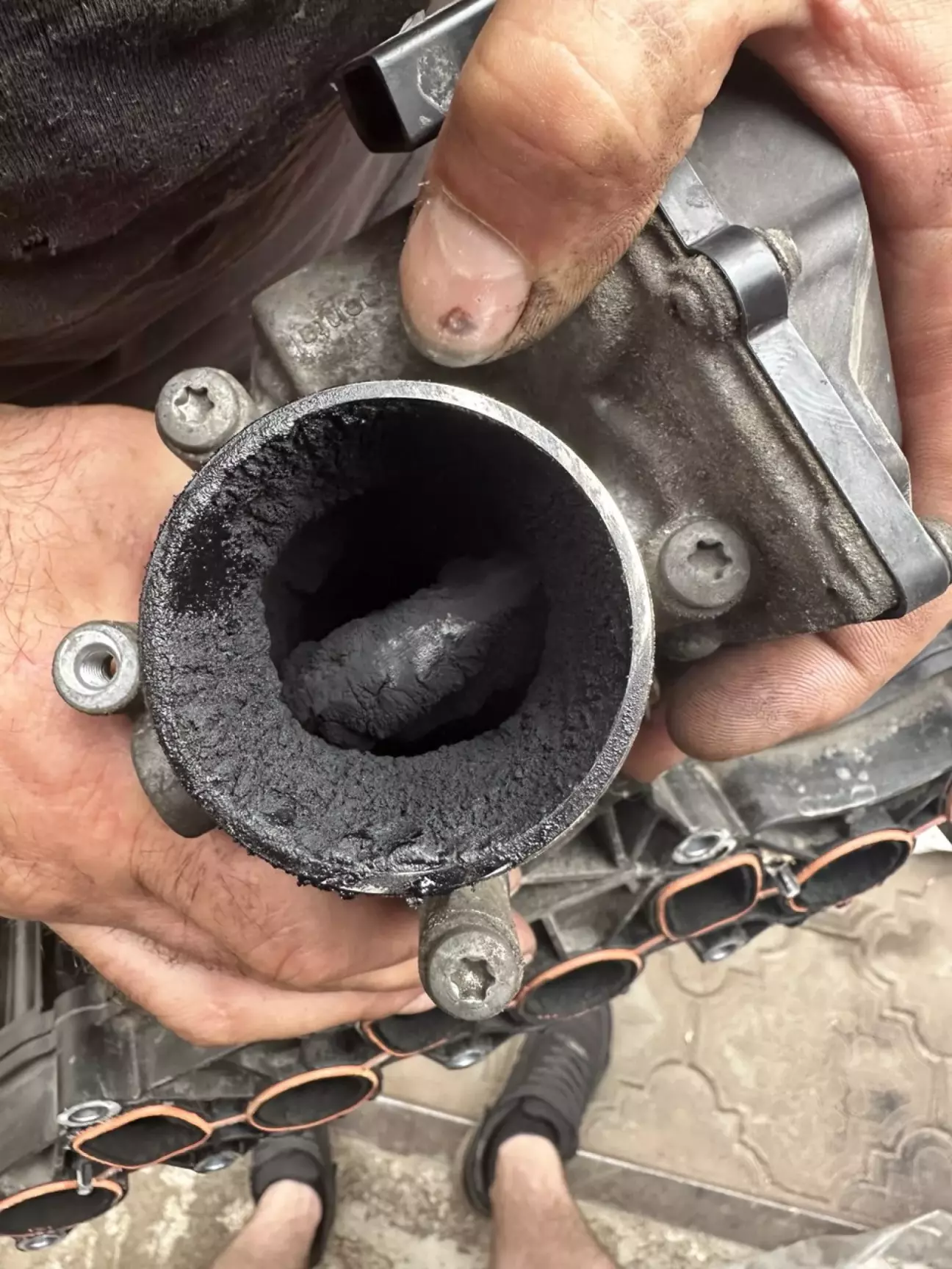 Почали все знімати та дефектувати що там і як, фото мені відправляли то був щах, я не міг навіть подумати, що це буду я і мій автомобіль, але маємо те що маємо. Дефектовка показала, що всі патрубки, інтеркулер, дросельна-заслонка, колектор.... все було в маслі та нагарі, це був жах.