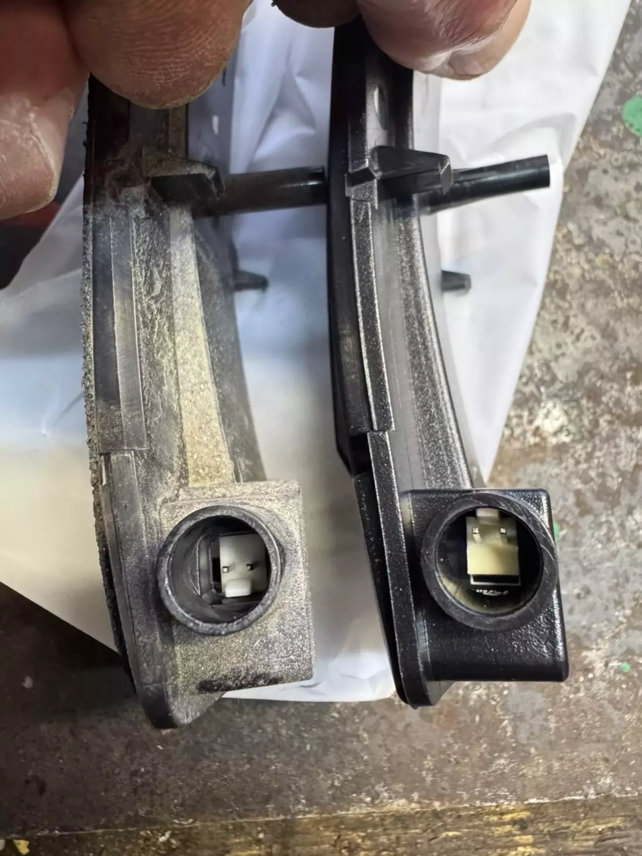 Після демонтажу рідного повторювача в першу чергу порівняв їх. Дві головні відмінності, які я помітив: розвернутий на 180 градусів роз'єм для під'єднання і спрощена форма повторювача на зовнішньому краї: у динамічного форма спрощена, без спеціального пазу для додаткової фіксації. Втім, забігаючи наперед, після встановлення жодних проблем ця відмінність не додала.
