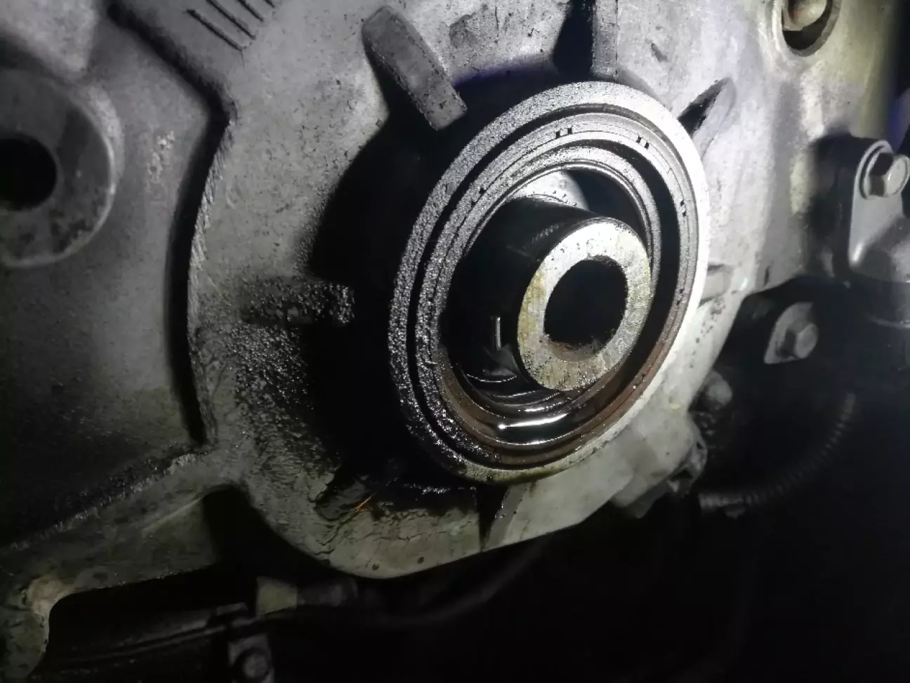 Ще в кінці літа я помітив, що весь піддон в маслі. Загнавши його на підйомник і замивши потьоки було локалізоване місце ймовірного витоку масла я це передня частина двигуна, якраз де шків колінвала. Мабуть потік таки сальник. Машина їздить мало, а у мене то часу нема, то погода погана... все ніяк руки не доходять замінити той сальник.
