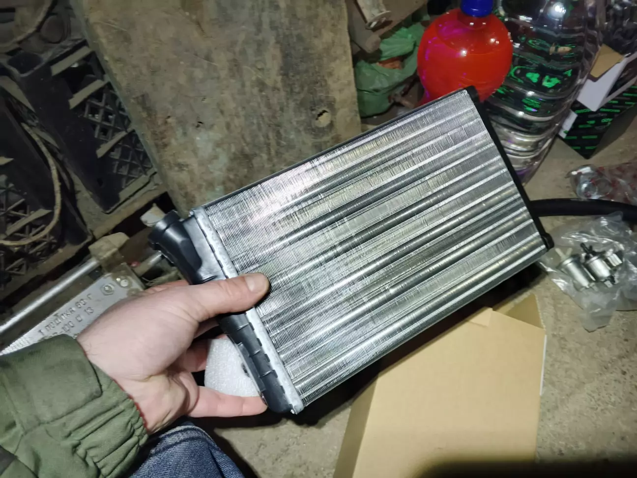 І так після усіх маніпуляцій замінив лише радіатор та кран пічки, думаю не варто розписувати по фото все видно. Встановив але ще не підключив помпу😁. Почистив усі патрубки і забув зняти картонку😂.