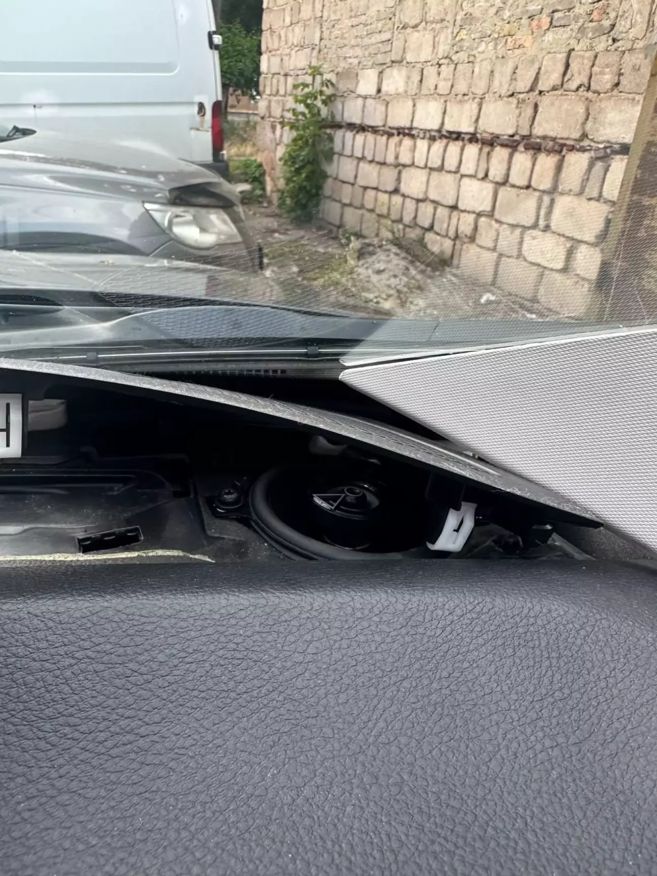 Ну і встановлення. По процесу нічого складного, треба зняти бокові накладки передній стойок, знімаються руками, далі буде доступ до широкої накладки на динаміки, вона на кліпсах, просто підіймаємо вверх за допомогою пластикових лопаток. По 2 торкси на кожному динаміку, міняємо, підключаємо, збираємо в зворотньому напрямку.