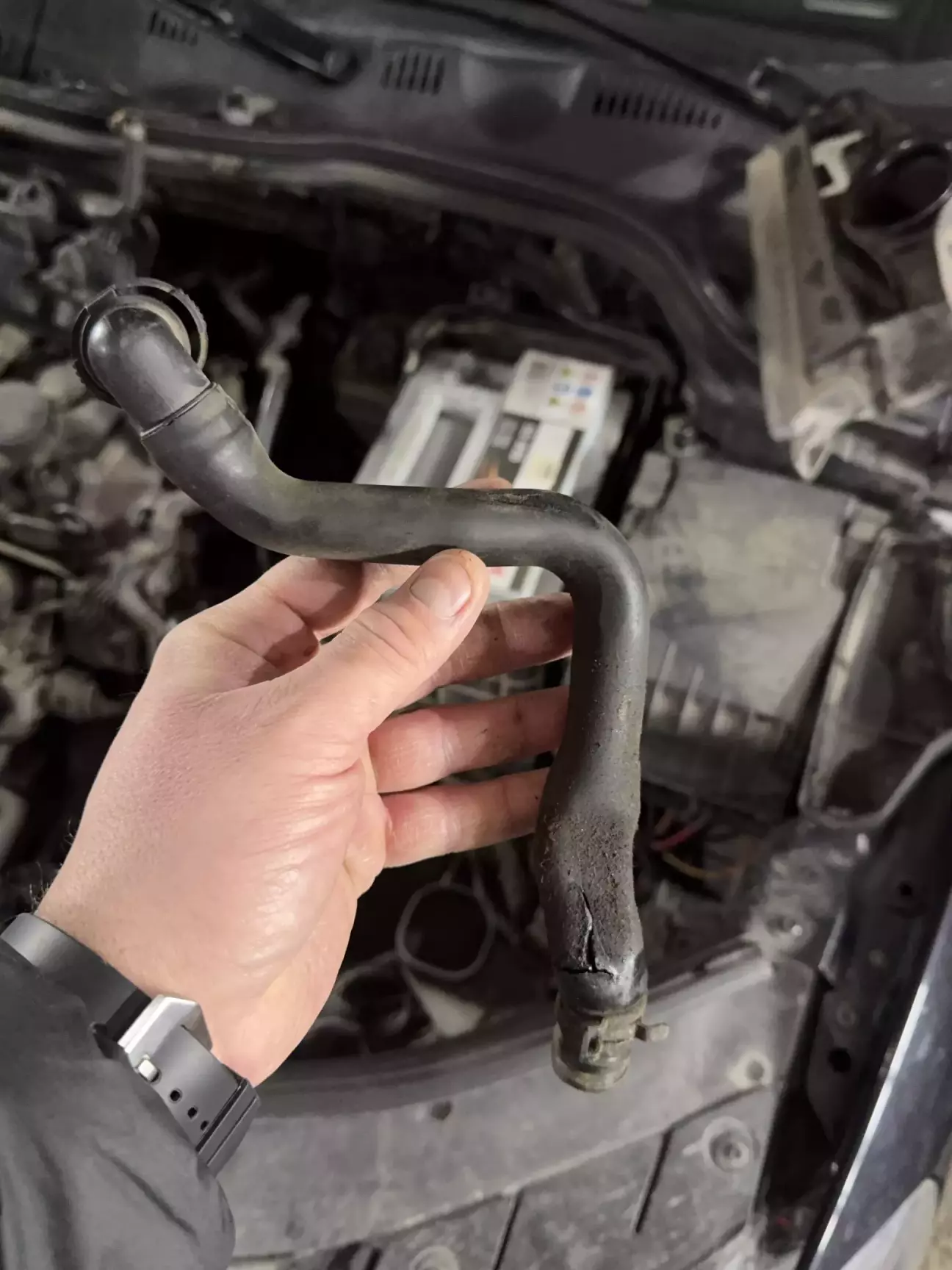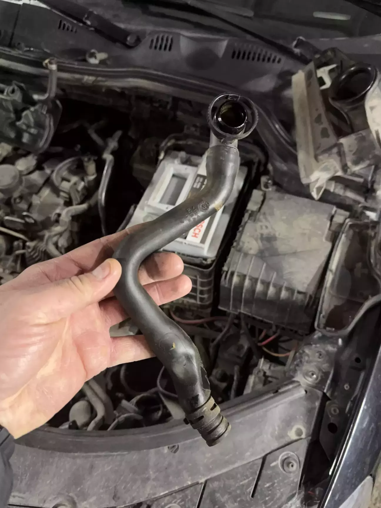 В процесі розбору було ще знайдена трубка вентиляції картерних газів - яка була тріснута. Добре що відразу знайшов їй заміну!