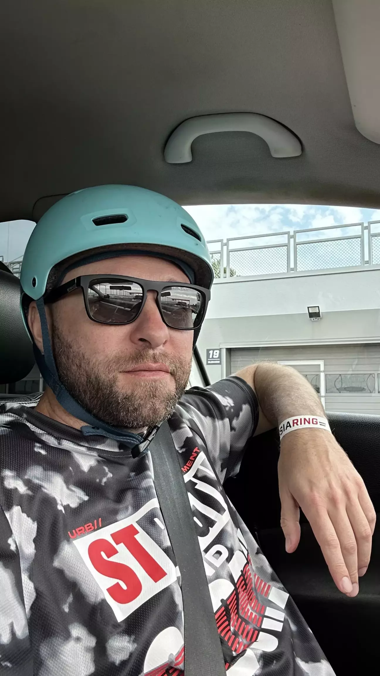 Ну вот наклейка на базе, я в шлеме, выкатываемся на старт.