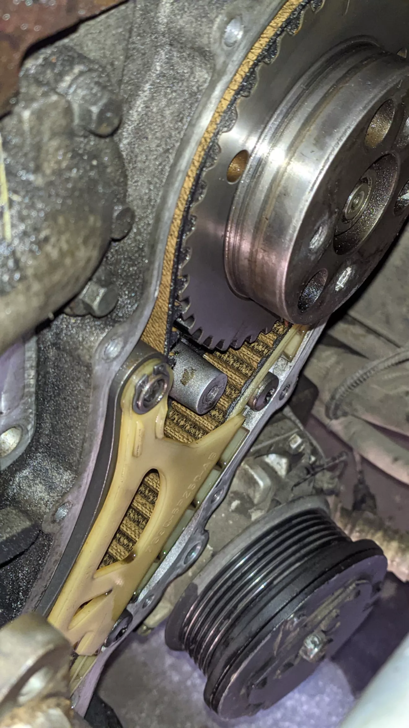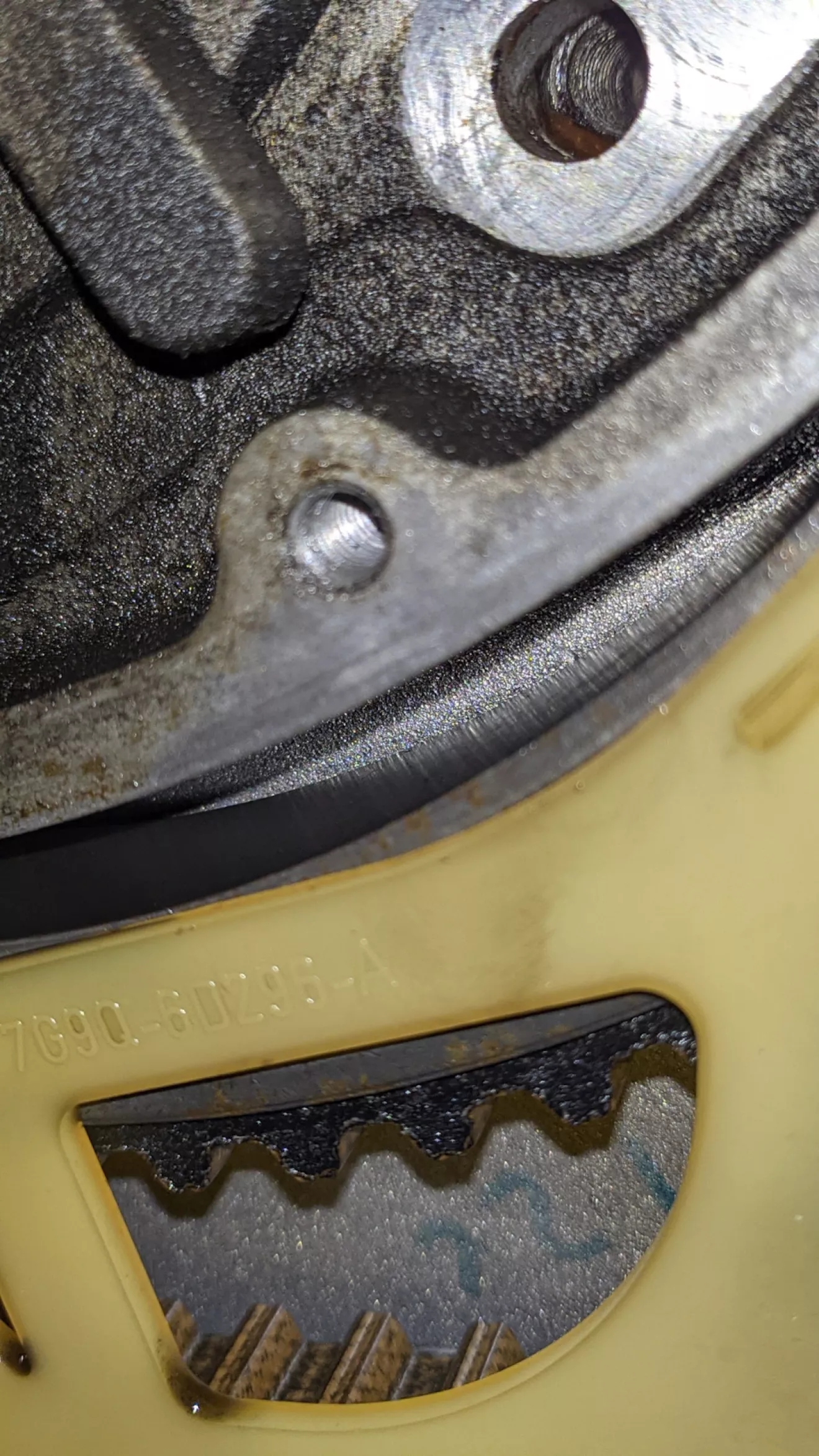 На удивление внутренний ремень был в норме и может и менялся уже, внутри вообще надрывов не было, а вот сверху трещинки есть, верхний был Dayco вроде как тоже свежий но уже маленькие трещинки видно, помпа имела люфт и была по фирме fomoco, поставили DOLZ, ремень генератора тоже стоял свежий, заменили на Continental.