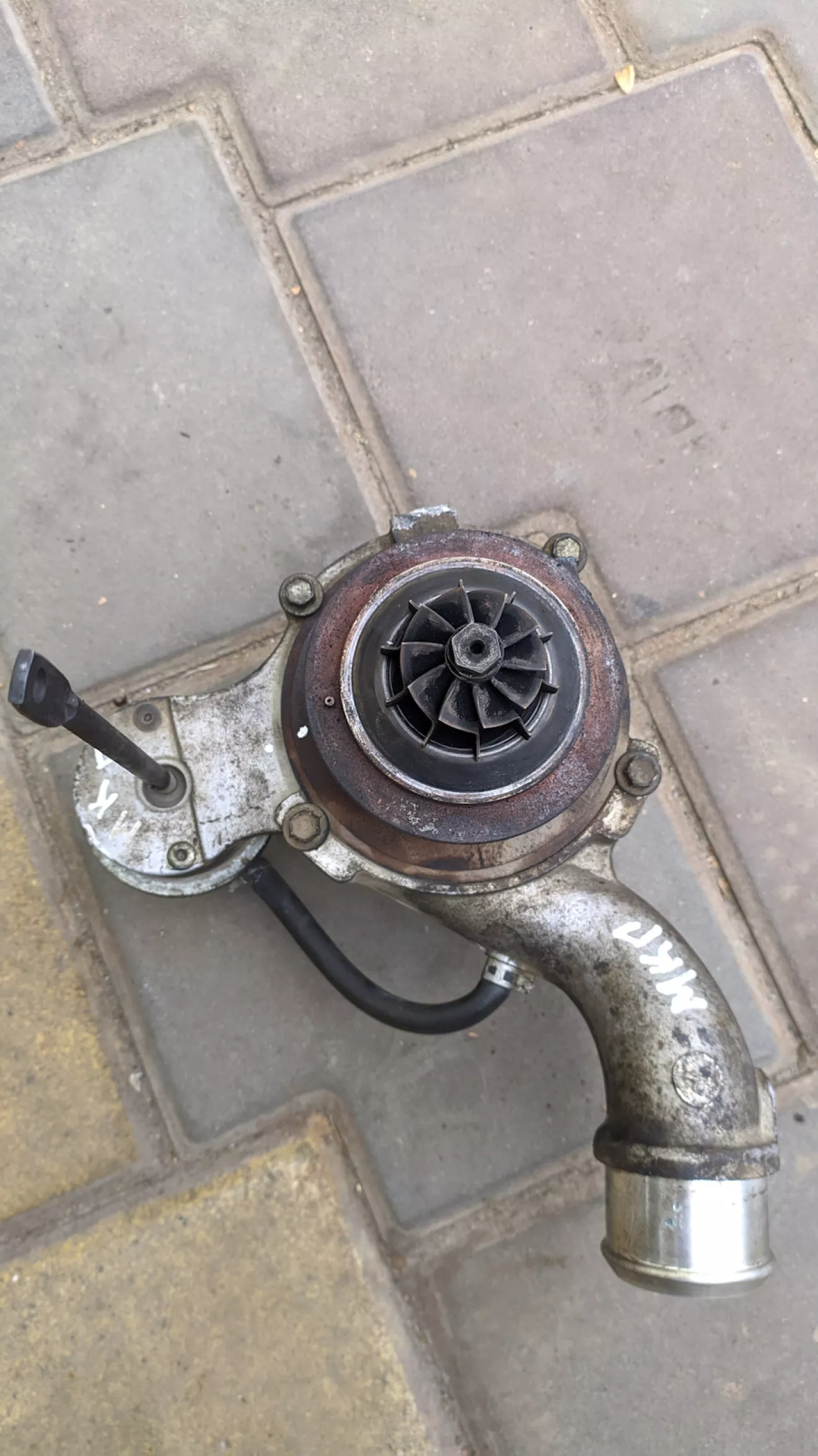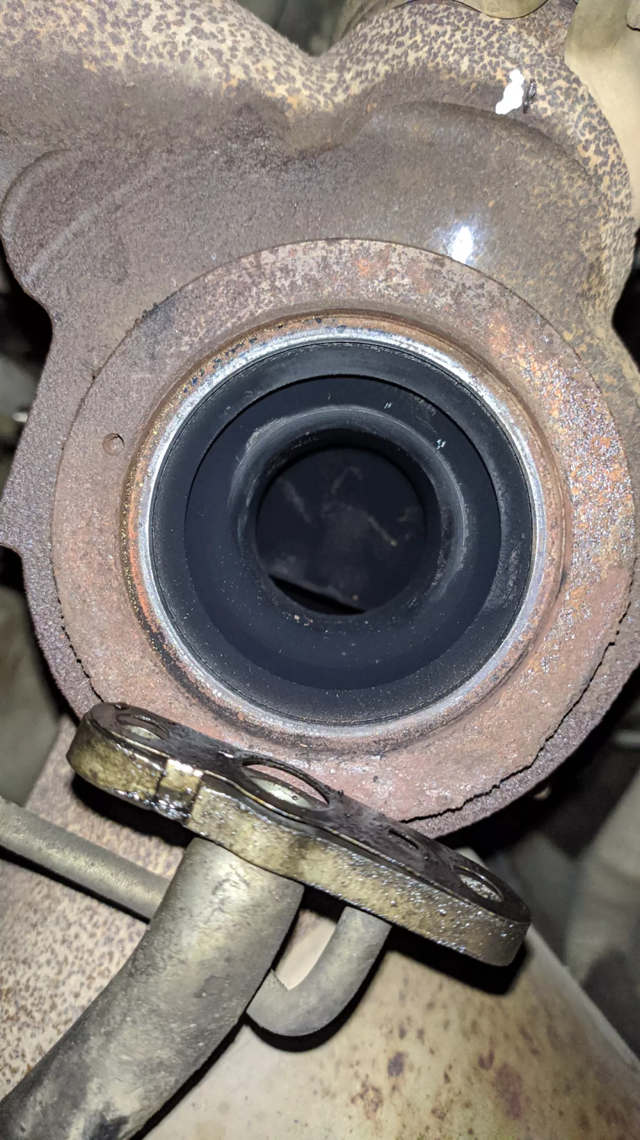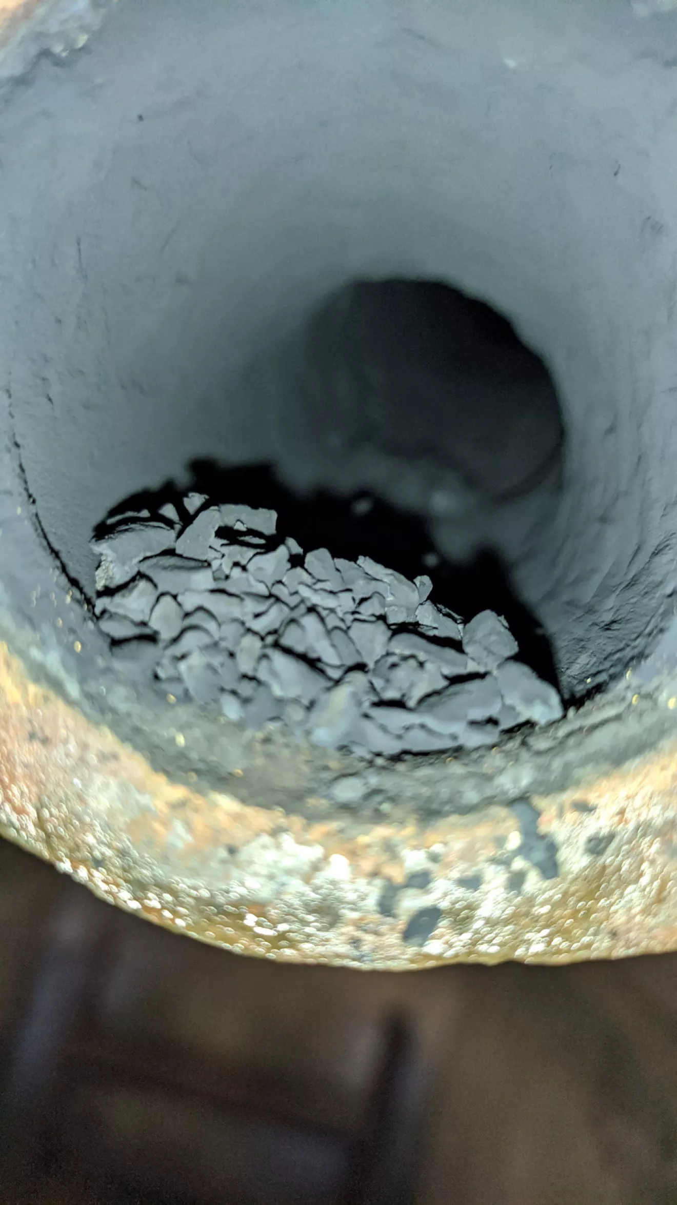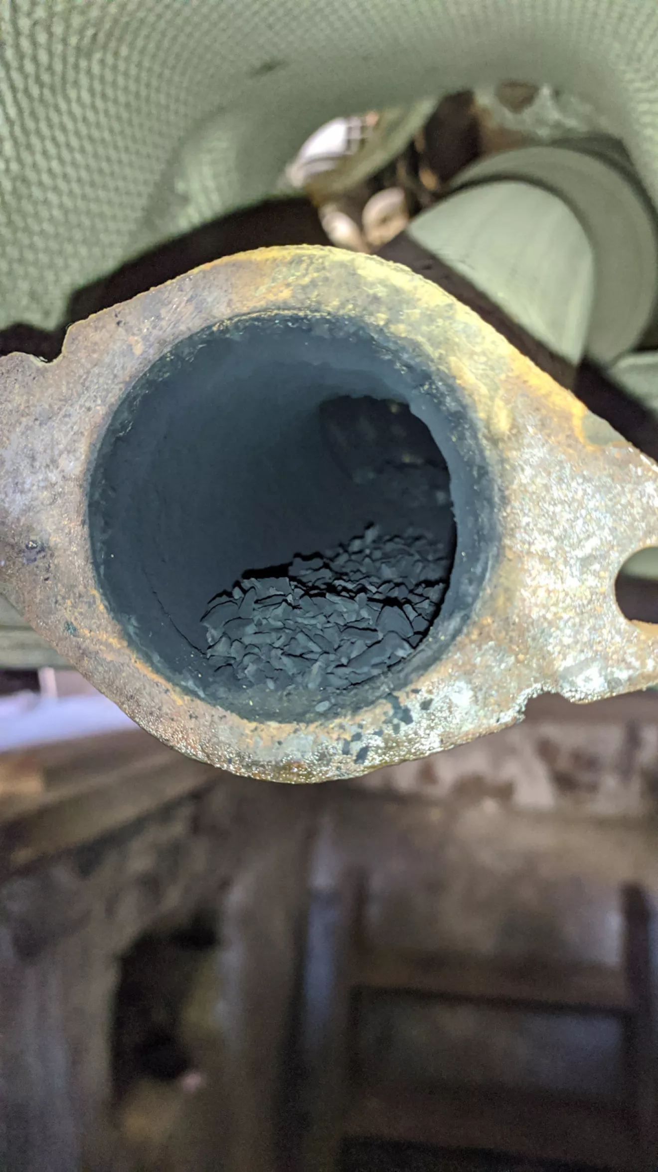 Так как форд уже и тяжело рушает с места, как будто у него прицеп на 2 тонны, то решено было снять турбину, Не чего критичного не обнаружилось.Единственное как нам показалось очень тугой шток актуатора.Решено было отправить турбину на проверку в г.Ровно.Давно видел видео на сто КОВШ по теме коннектов, что после вырезки катализатора большое сопротивление в выхлопной системе.Мы тоже решили проверить, результат на фото.Не знаю эта закупорка влияет ли на езду посмотрим, но вера в форд что он начнет нормально ехать уже почти нету…