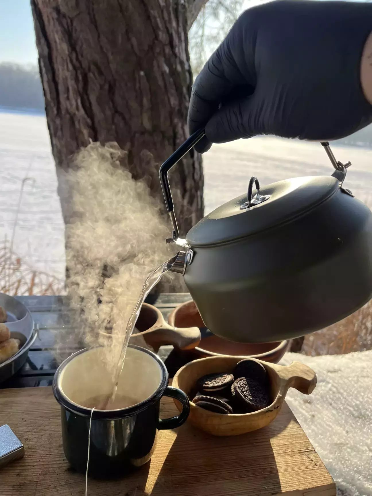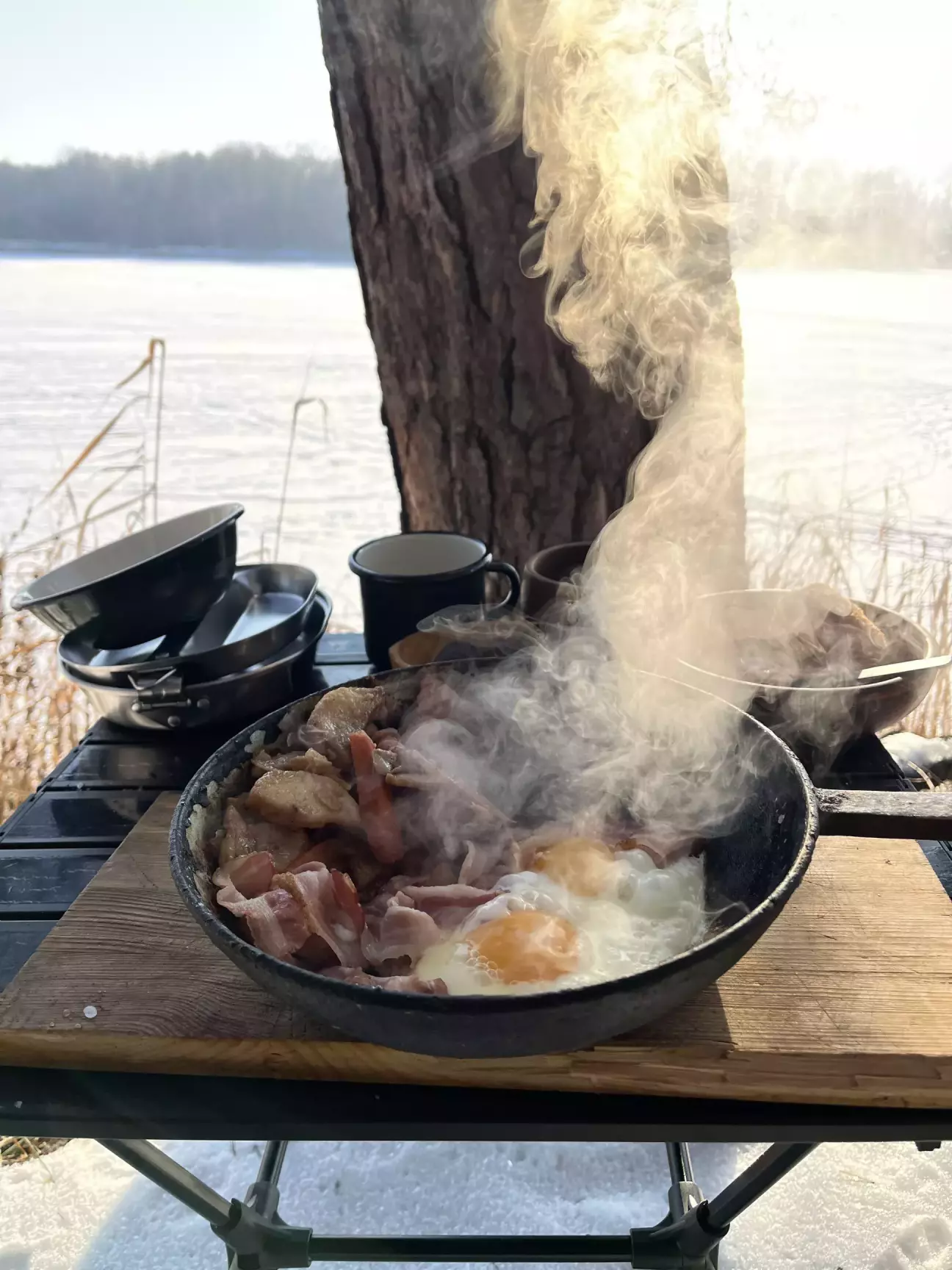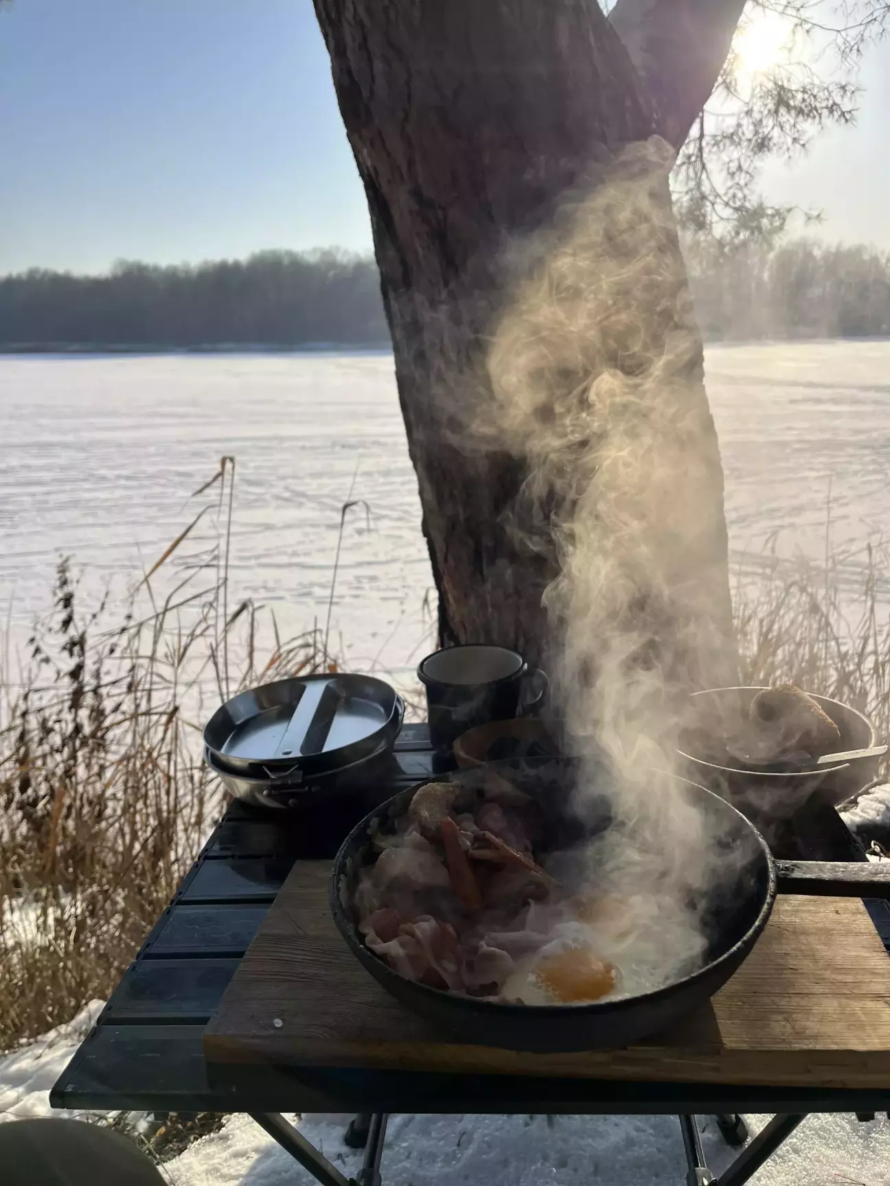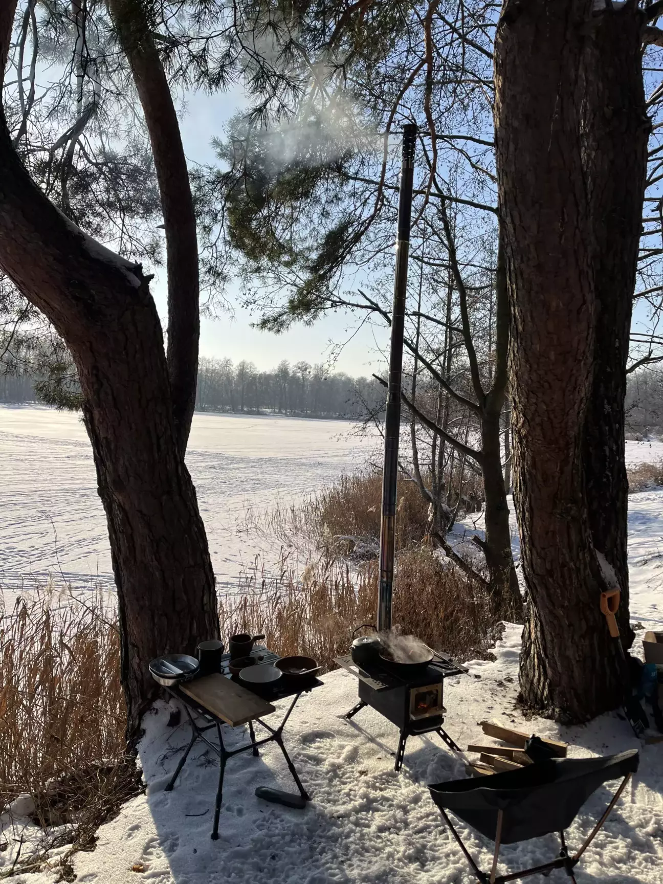 А коли в неділю зранку, я зрозумів, що круто було б попити чаю на озері, то стикнувся з шматком льоду, який роздовбував.