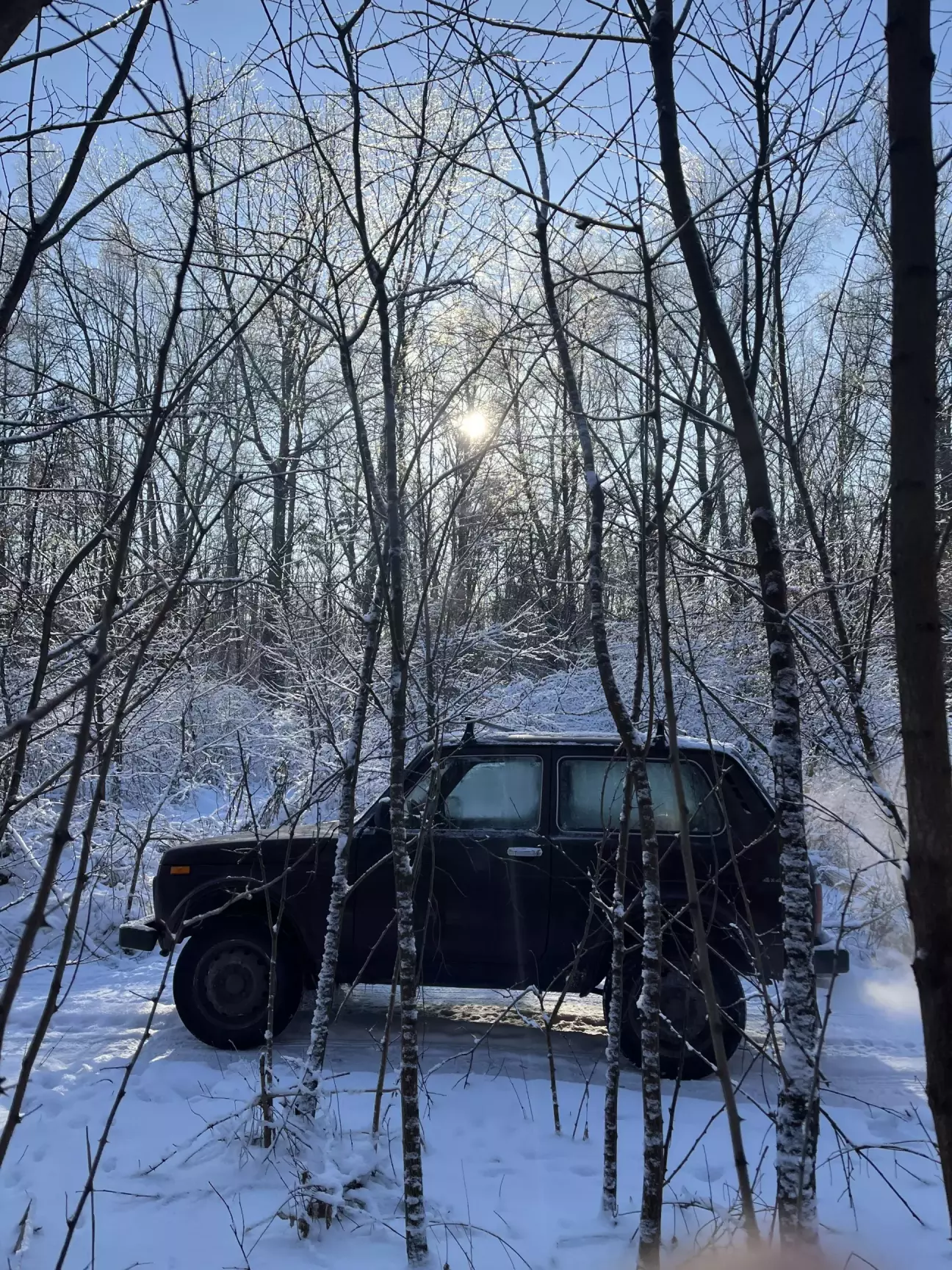 Вигнав авто до сонечка, щоб трохи відігріти.