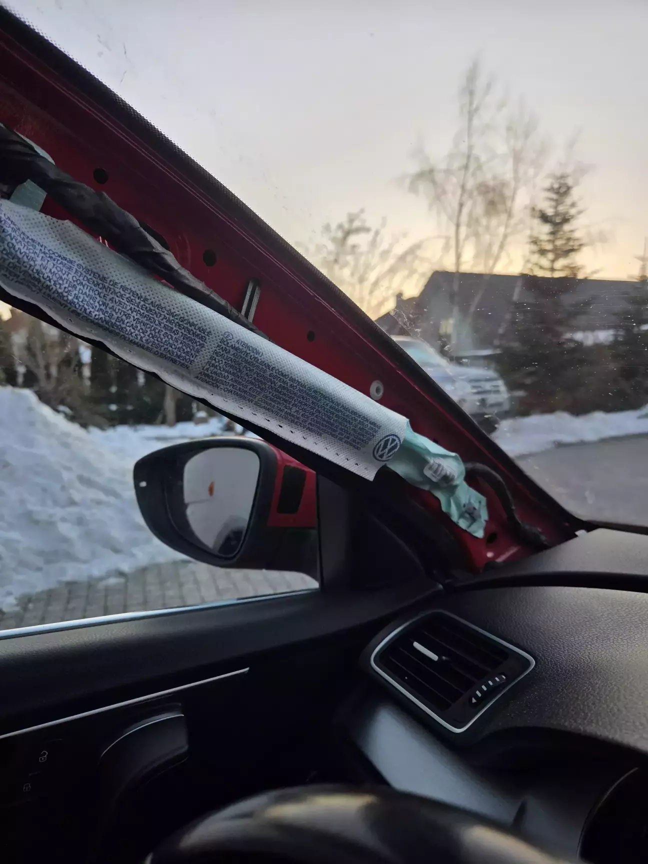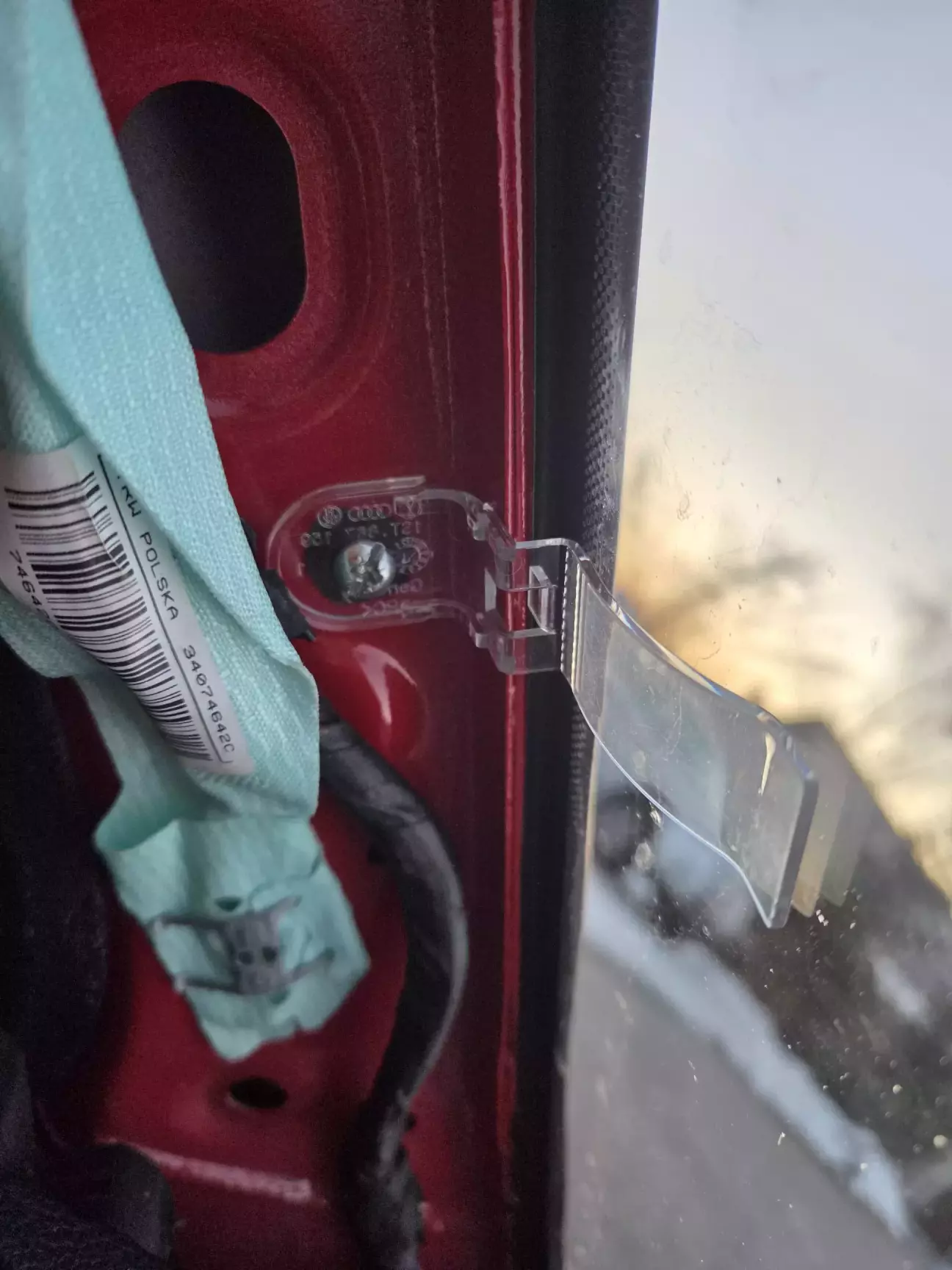 Знімаємо облицювання стійки, для цього пласкою УВАГА! Чистою! Викруткою піддіваємо засліпку з написом AIRBAG , піддіваємо її з нижнього краю і відкриваємо вгору. Не бійтеся, там нічому ламатися. Під нею, в глибині є гвинтик Torx 20, якщо не помиляюсь. Тільки беріть тонку викрутку для нього, бо він вкручений глибоко, а отвір під кришечкою AIRBAG вузький і біта із набору головок туди не пролізе.