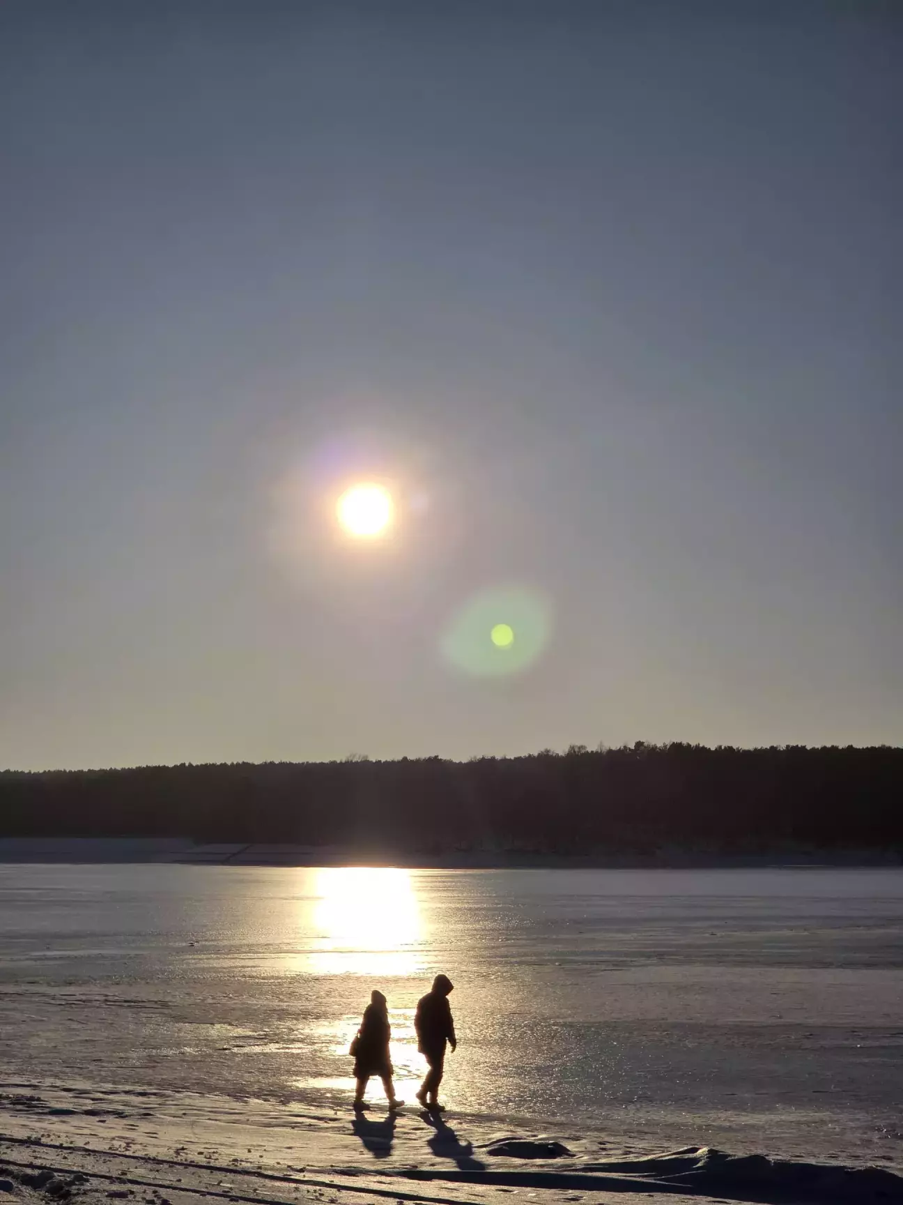 На наступний морозний день, виїхали трохи на прогулянку. Поїхали на замерзше озеро.
