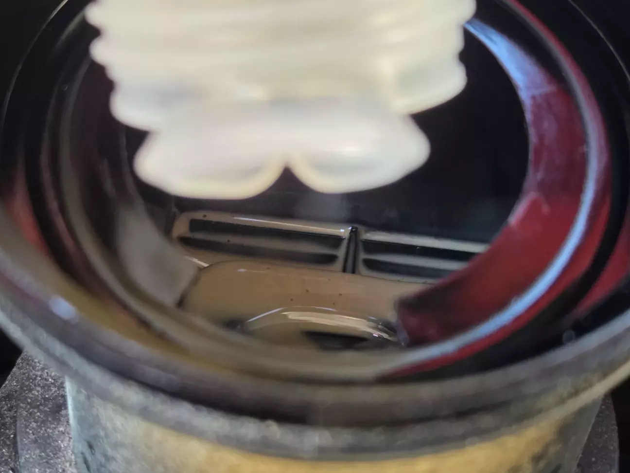 Вливаю чисте масло в стакан фільтра, щоб вимити старий залишок, грам 200.