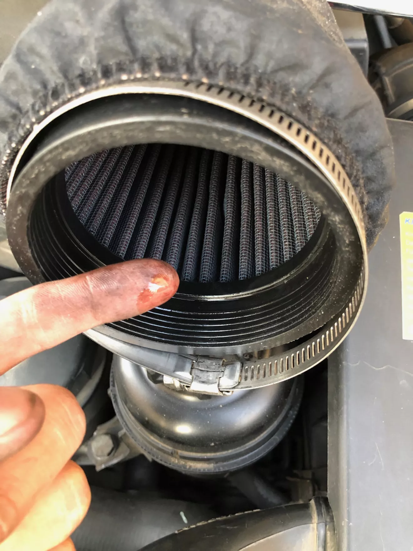 2) Нульовик почало скручувати. А це означало що він почав погано пропускати повітря. Хоч K&N каже що він вічний і треба тільки мити і пропитувати його — НЕПРАВДА. Я користувався ним 2 роки і чистив і пропитував кожного місяця. Більше того — в мене ще й на нього одягнений оригінальний фільтр — носок. Не допомогло