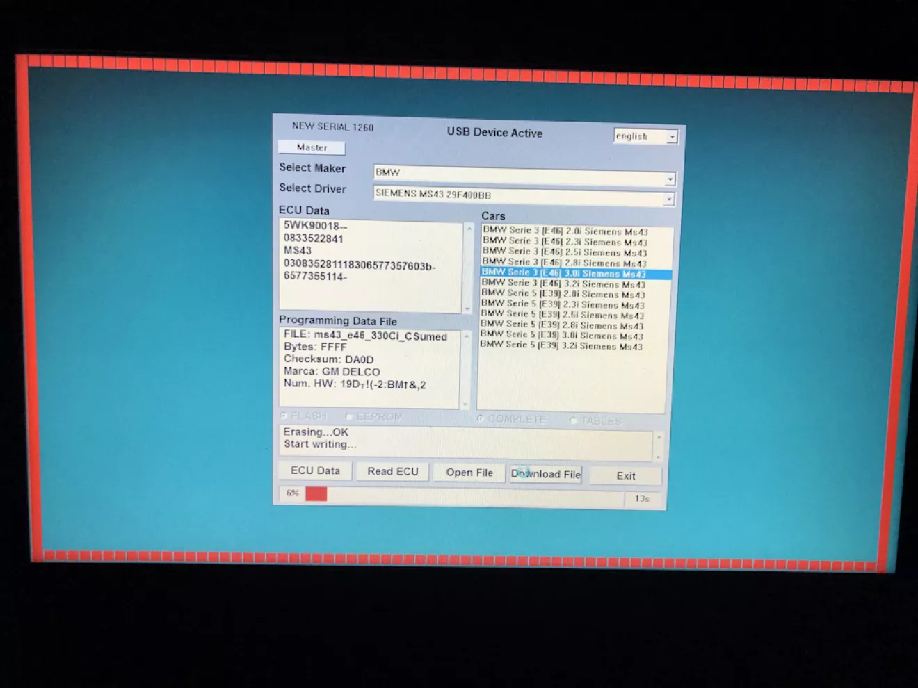Під час прошивки засвічуються деякі лампочки і стрілка температури лягає вправо — це відвалюються деякі блоки. Так має бути, нічого страшного. Після прошивки треба підчистити всі помилки, які зявились в результаті цього.