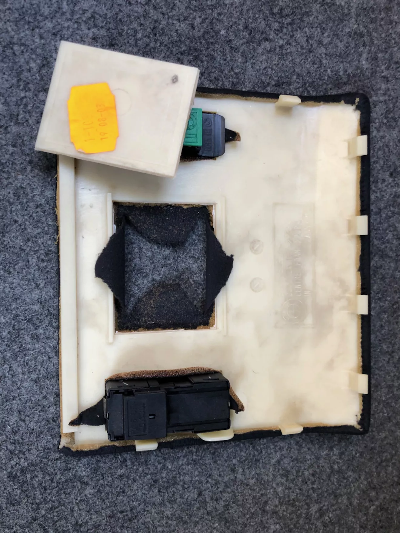 3) Відклеюємо пластиковий квадратик від тканини. (Чомусь ніде не сказано що воно приклеєне)