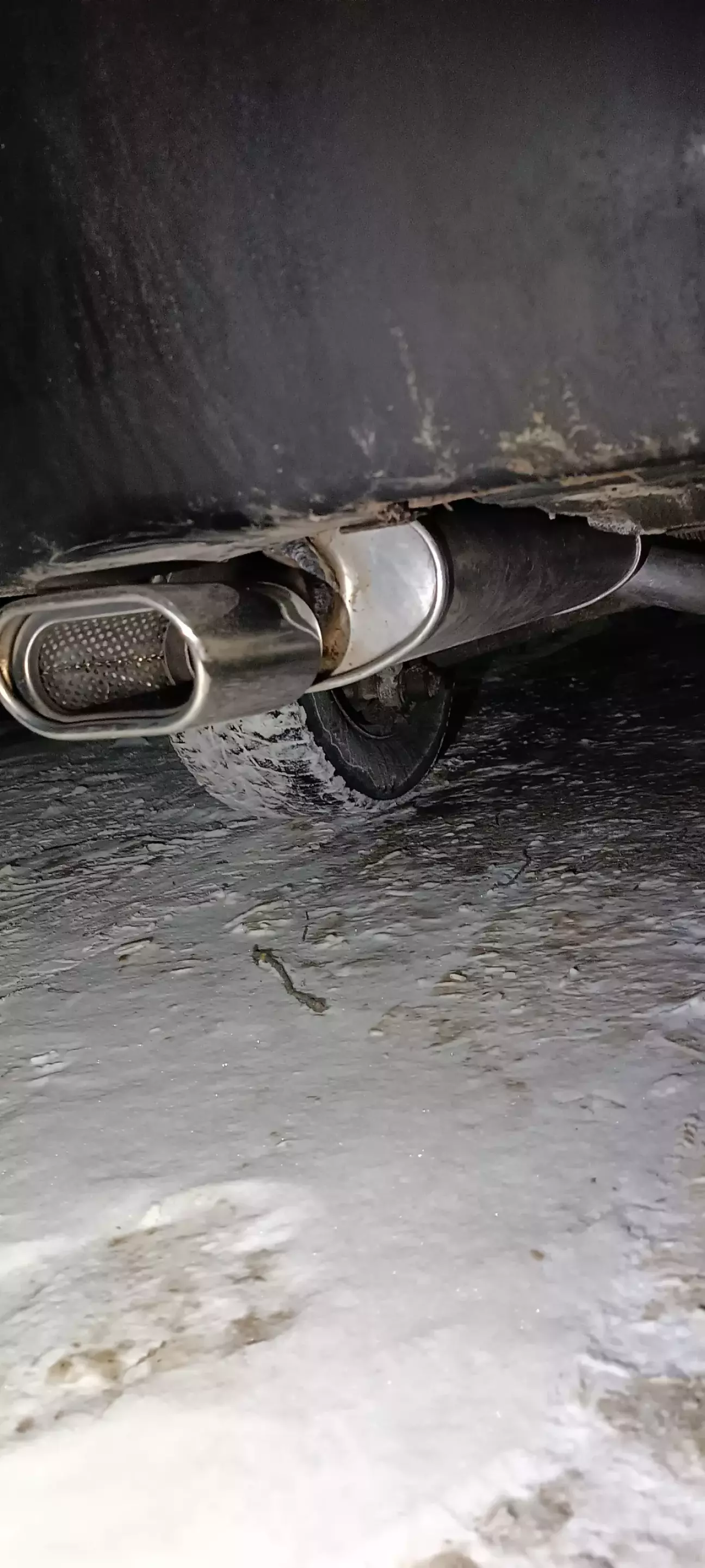 Вирішили не різати бампер та підсилювач бампера а повісити її під бампером, зовнішній вигляд має сочний і звук гарний, не звенить не гуде, до 3000 працюэ як штатний після появляєтся більш гучний спортивний звук по відчуттям машині набагато стало легше їхати.