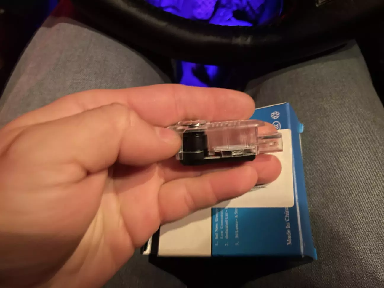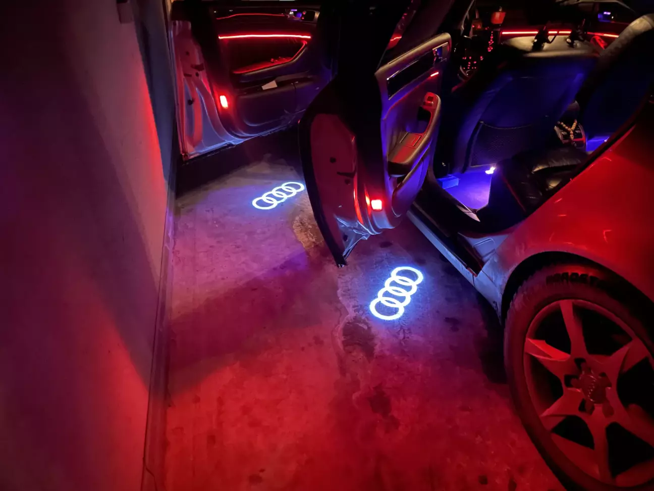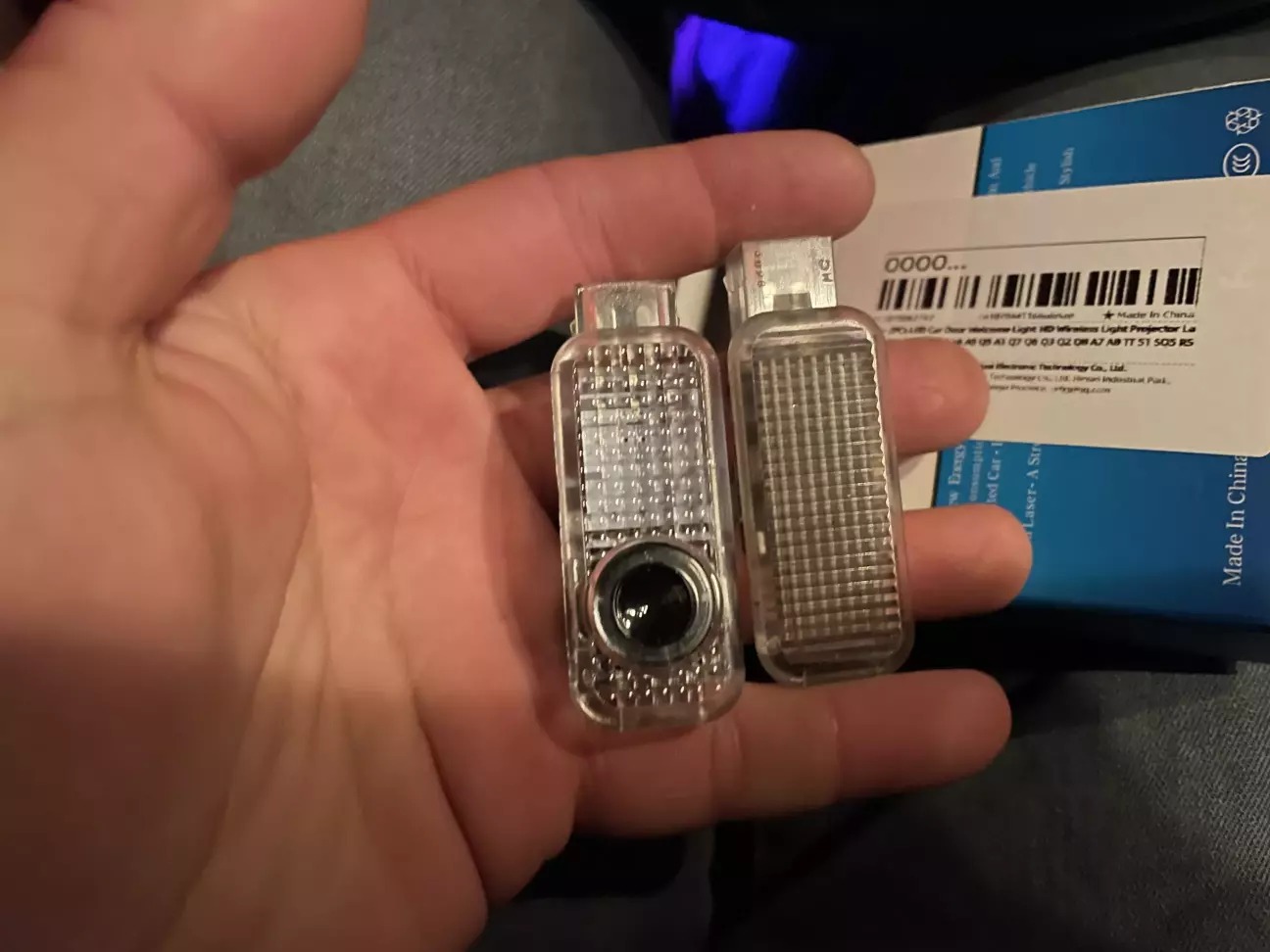 Не оминула і мене ця підсвітка з проекцією логотипу. Спочатку не хотів, сприймав як колхозінг, але ж про смаки не сперечаються. І от, чи то в мене смак став гірший, чи навпаки доріс до них… але вже є як є. Побачив у Сані , мого кєнта, в машині нові, запаковані підсвітки, питаю «нашо тобі ще?» той каже, та про запас, запасні. Кажу, продавай, я собі поставлю)