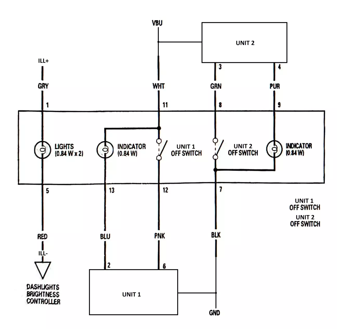 UNIT 1 керується плюсом, UNIT 2 - мінусом/землею