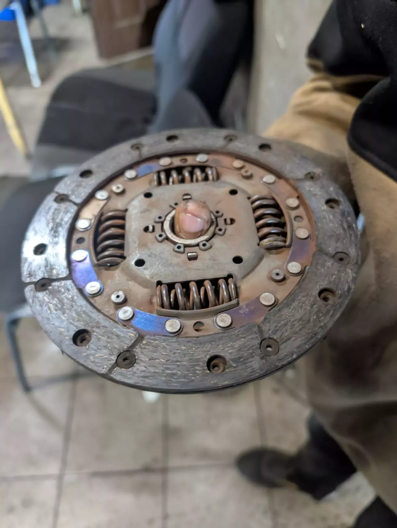 Як виявилось вижимне, підшипник тарабанив, а далі побачили що саме зчеплення було вже сильно зношене, диск аж синій та злизаний під нуль 😐
