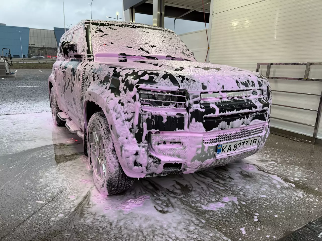 Дзвінок в страхову, стандартні питання-відповіді, випадок зареєстровано. По приїзду заскочив на самомиєчку, поки ще не було лютих морозів (а подія сталася якраз перед новим роком), як же не сфоткати машину в гламурній рожевій піні?