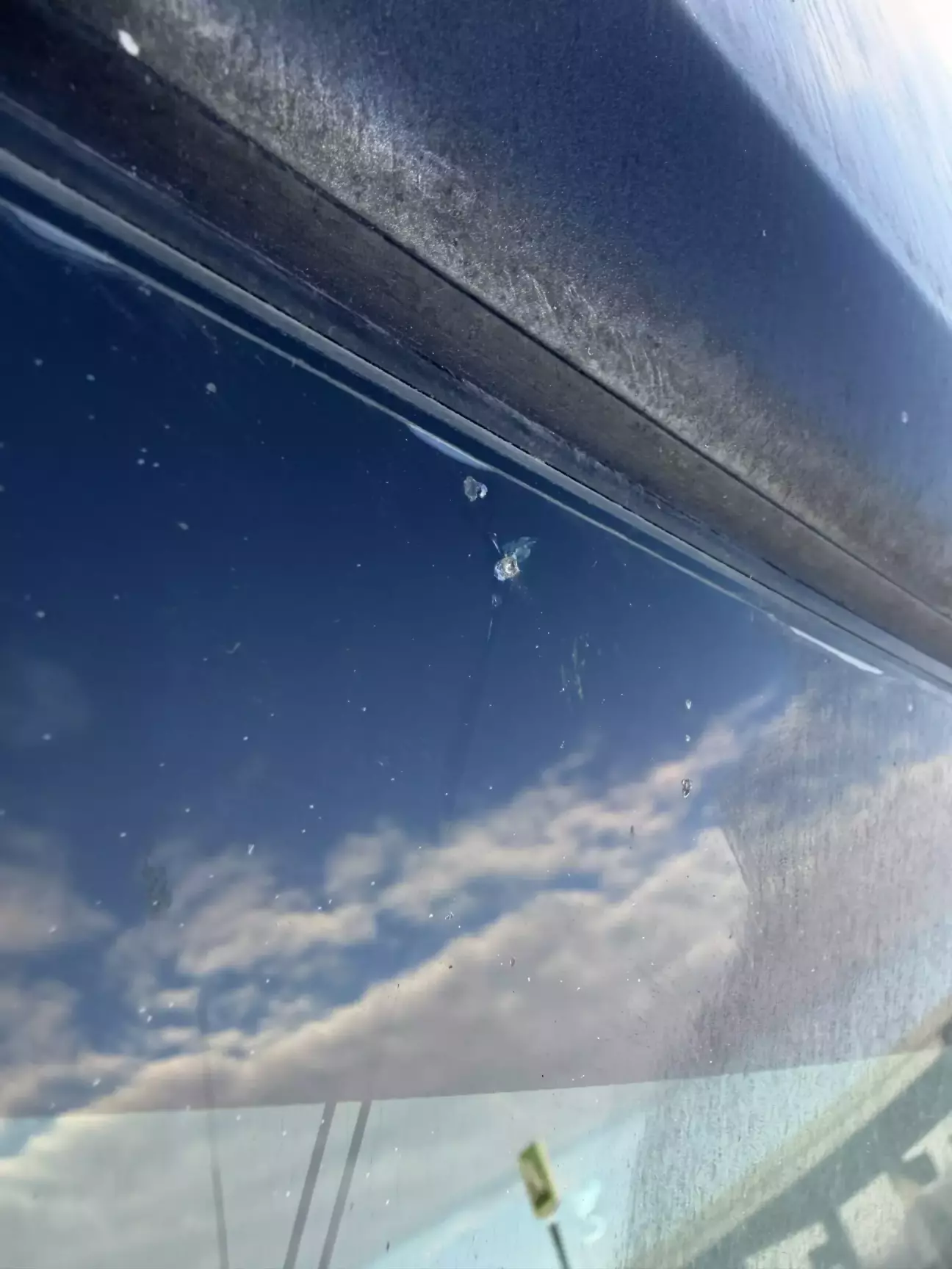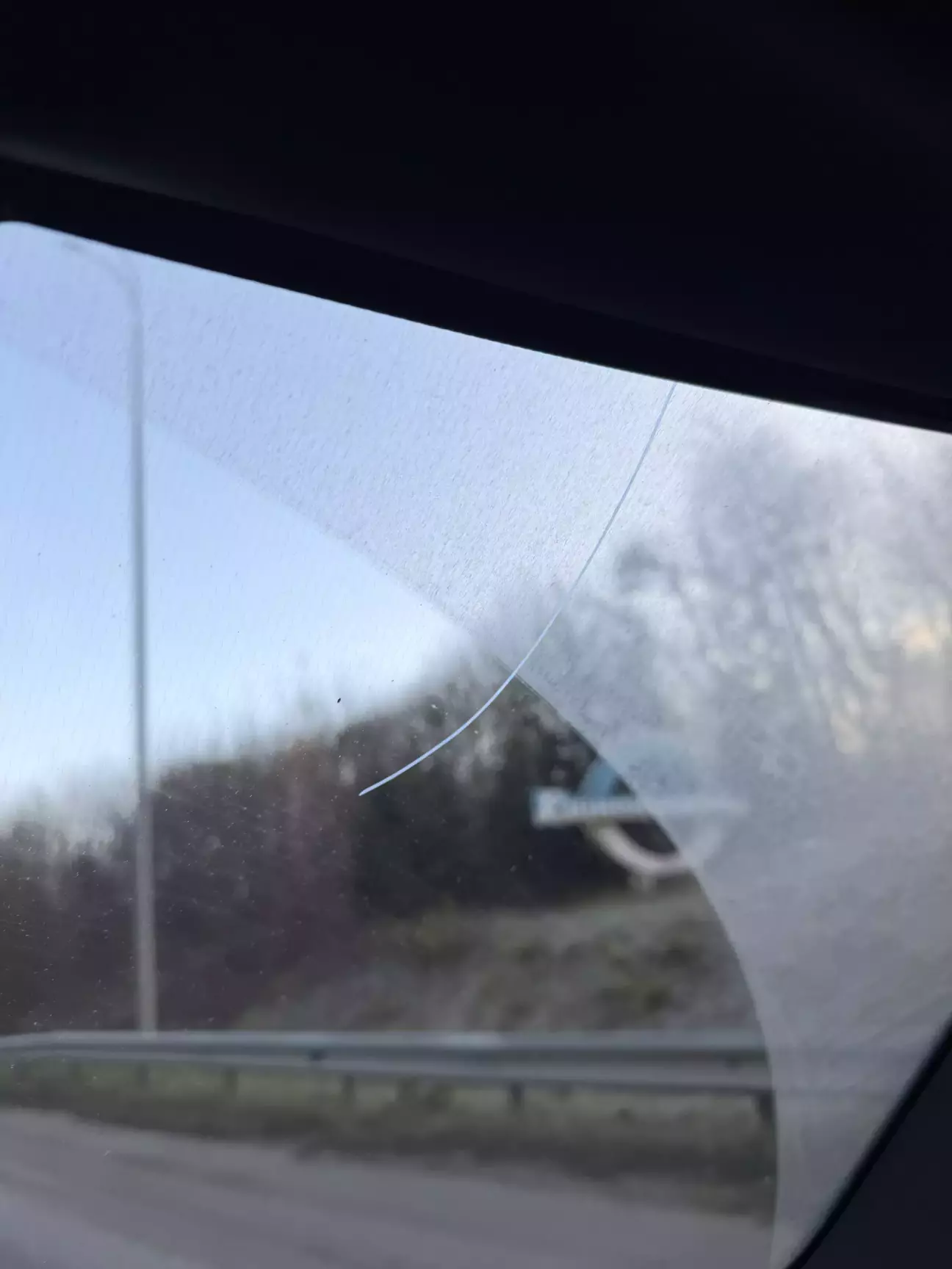 Але ж бувають в житті неприємності, і не щастить. Цього разу камінь виважено летів у верхню частину лоового скла і перед самим контактом розвернувся гострою частиною до скла. Ну це я сам собі так придумав, бо інших варіантів я не знаю. Думаю це війна каміння і скла, і цю битву я програв. Бо клацнуло так, шо я спочатку думав то в мене барабанна перетинка лопнула. Що цікаво, клацнуло й клацнуло, миттєво "результату" я не помітив. Через деякий час бачу...щось...
