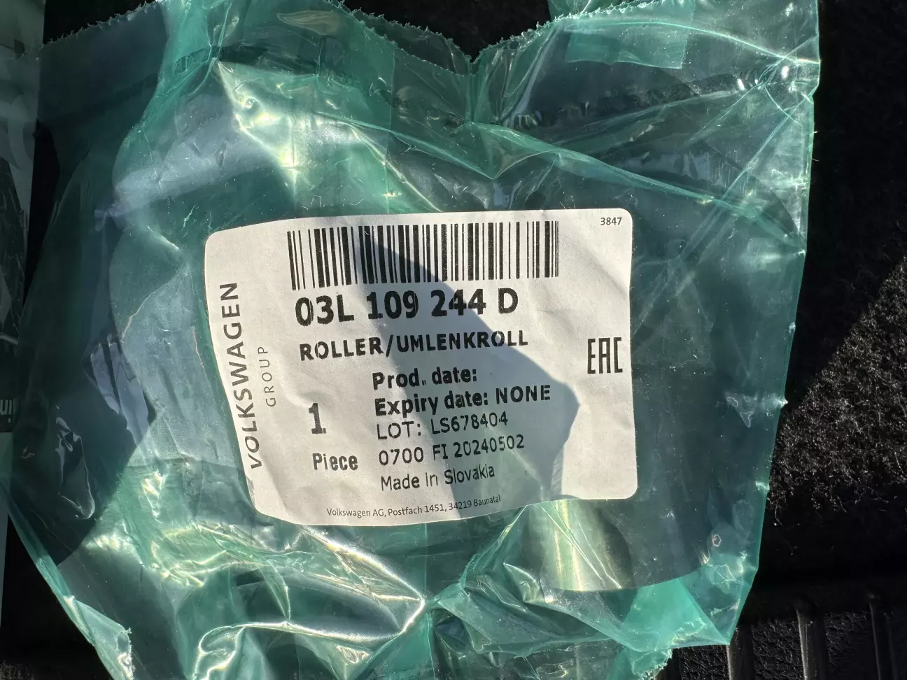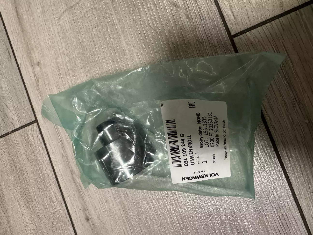 Звісно, звичайний набір я повернув, мені замість нього пообіцяли вислати потрібний, всі номери вдруге обговорили з продавцем. Але через добу мені знову прийшов той самий К замість F. Дивна ситуація, прийшлось шукати у себе в місті. І яке було моє здивування, коли я знайшов і купив у офіціалів VW оригінальний набір F дешевше за К - 605 злотих.