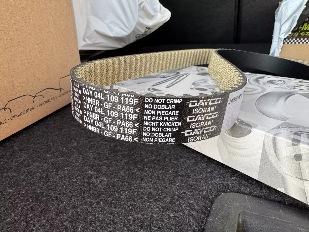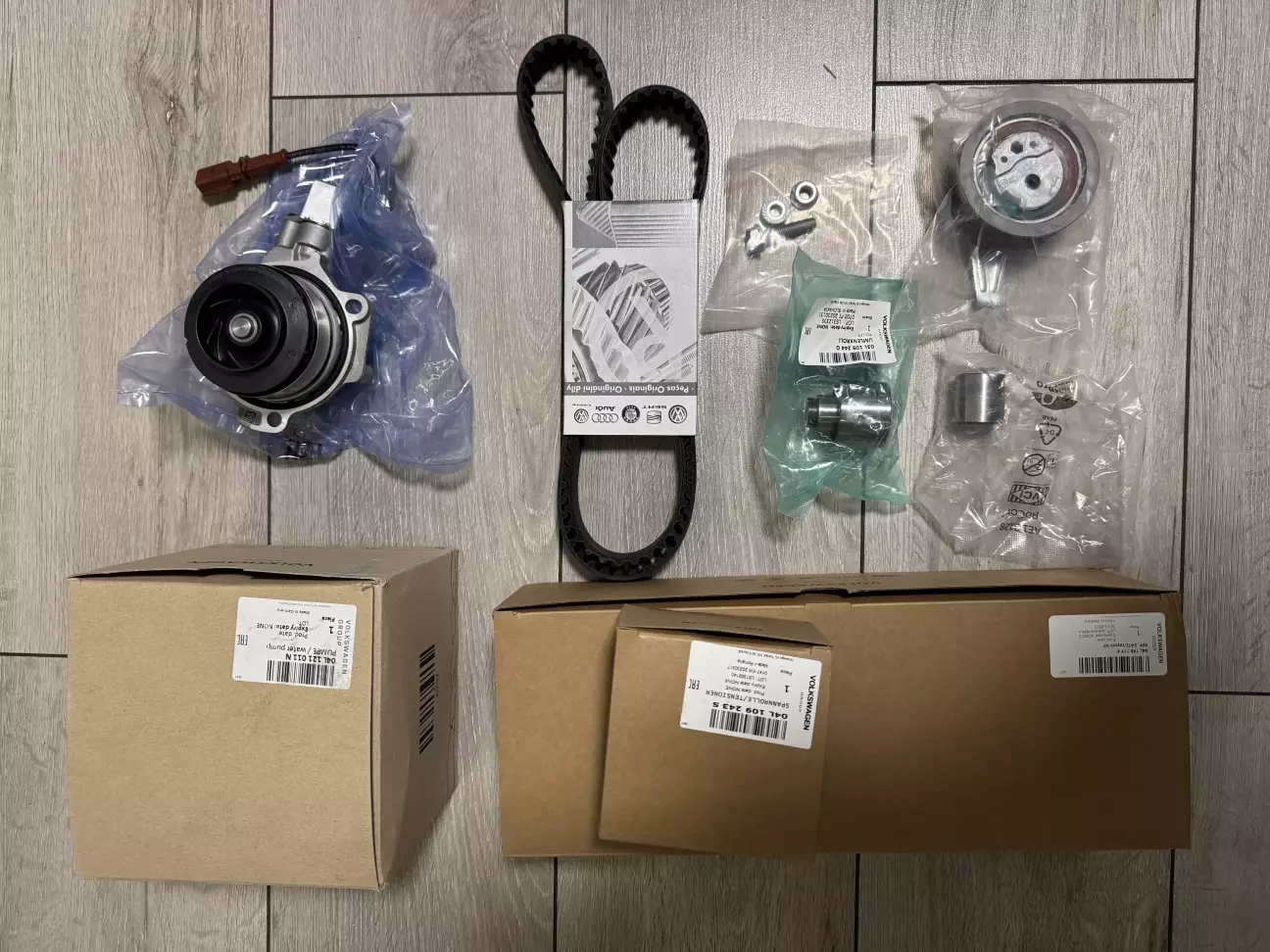 Вивчив питання по номерам запчастин. Набір ГРМ мені потрібен був 04L198119F. Знайшов на Allegro та замовив (перед цим уточнив у продавця номер та надав VIN свого авто). Приїхав 04L198119К.