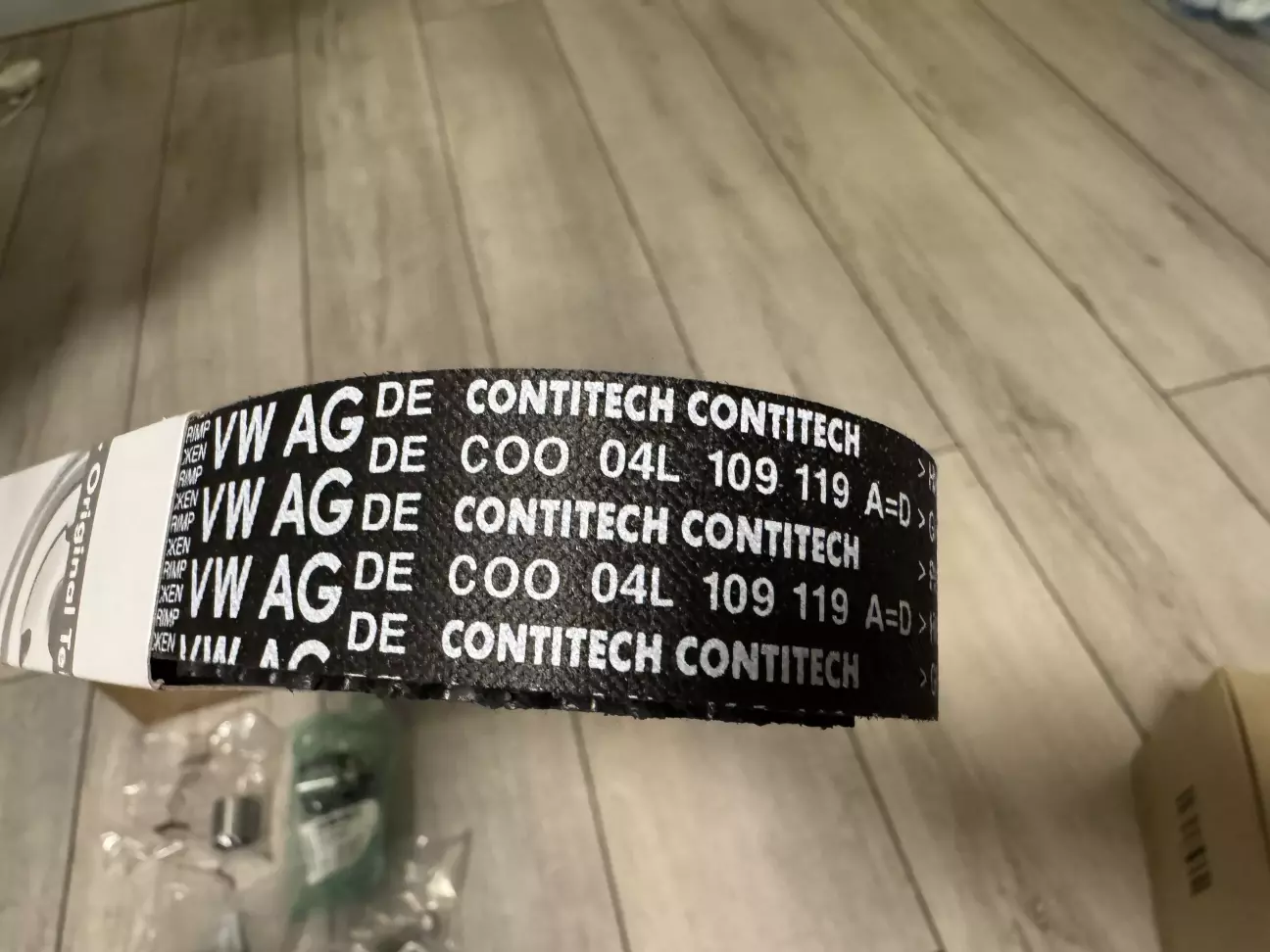 Порівнявши склад наборів, видно різницю в ременях та натяжних роликах. Справа в тому, що для CUAA вони підсилені. Ремінь в середині має тефлонове покриття і білий колір (звичайний весь чорний). Виробник підсиленого ременя в оригінальному наборі DAYCO, а звичайного - CONTITECH.