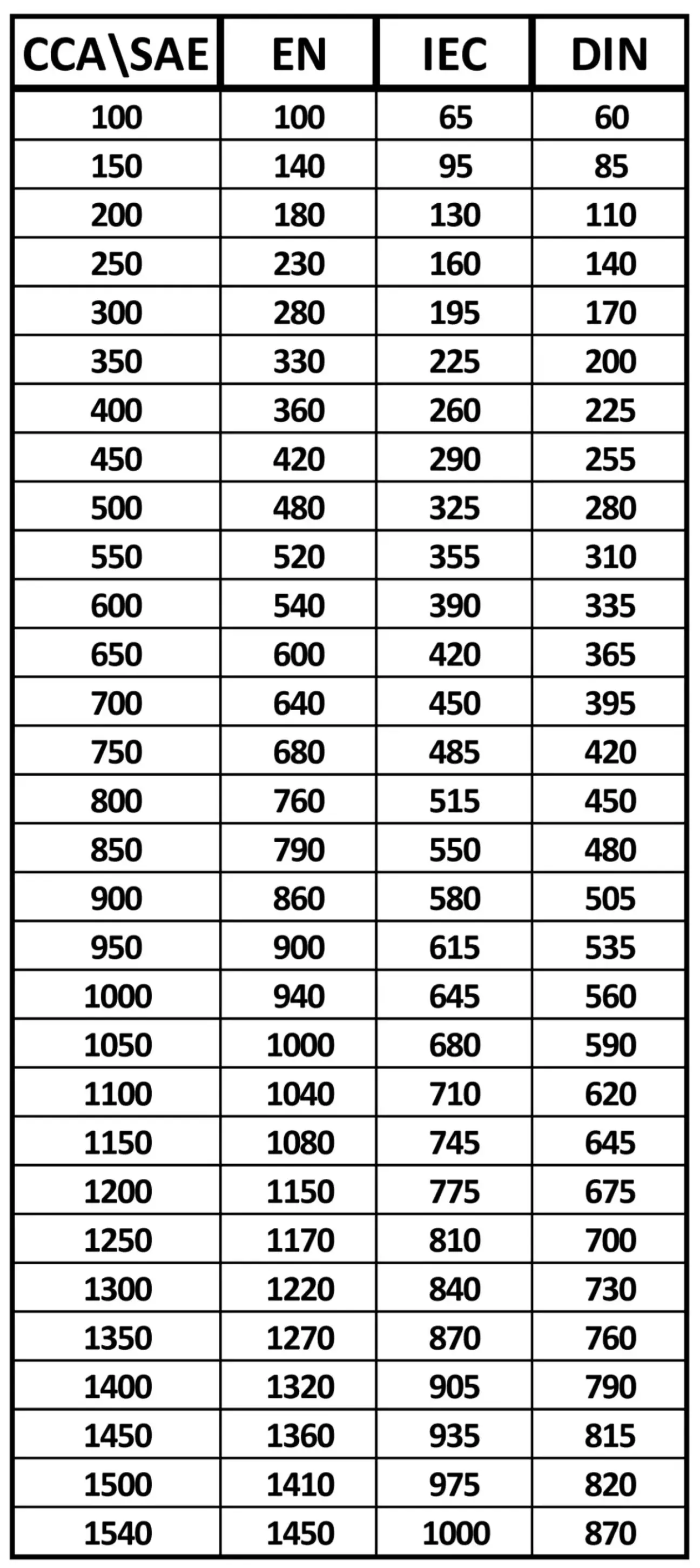 IEC (Международная электротехническая комиссия) — испытание проводится при температуре -18С. После разрядки АКБ током холодного пуска, напряжение не должно упасть ниже 8,4 В в течение 60 секунд.IEC=DIN/0.85