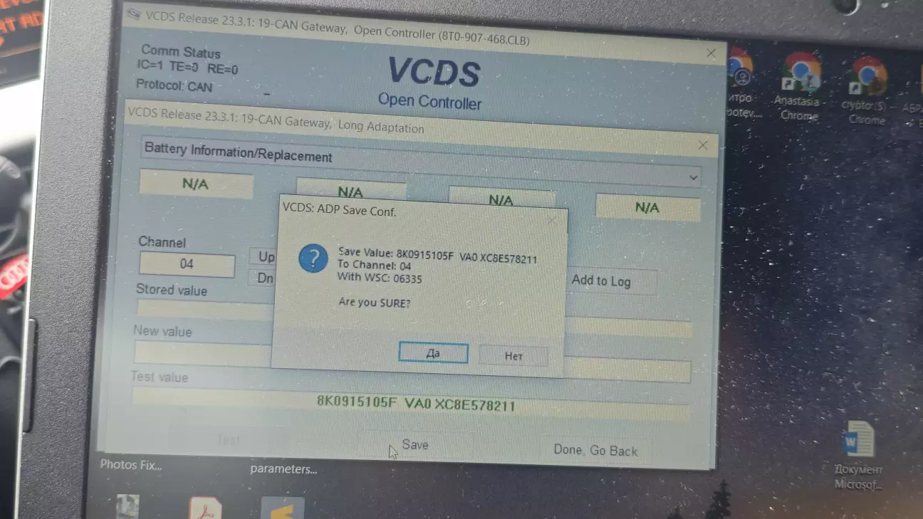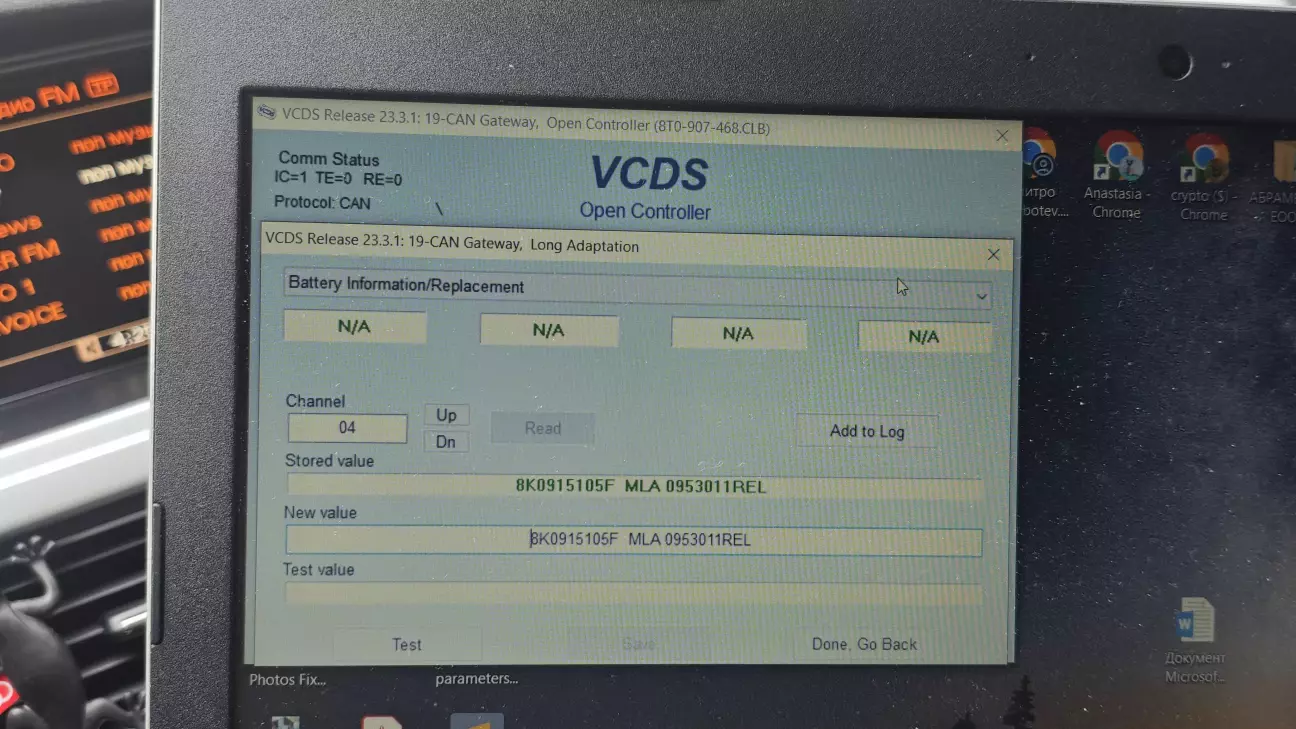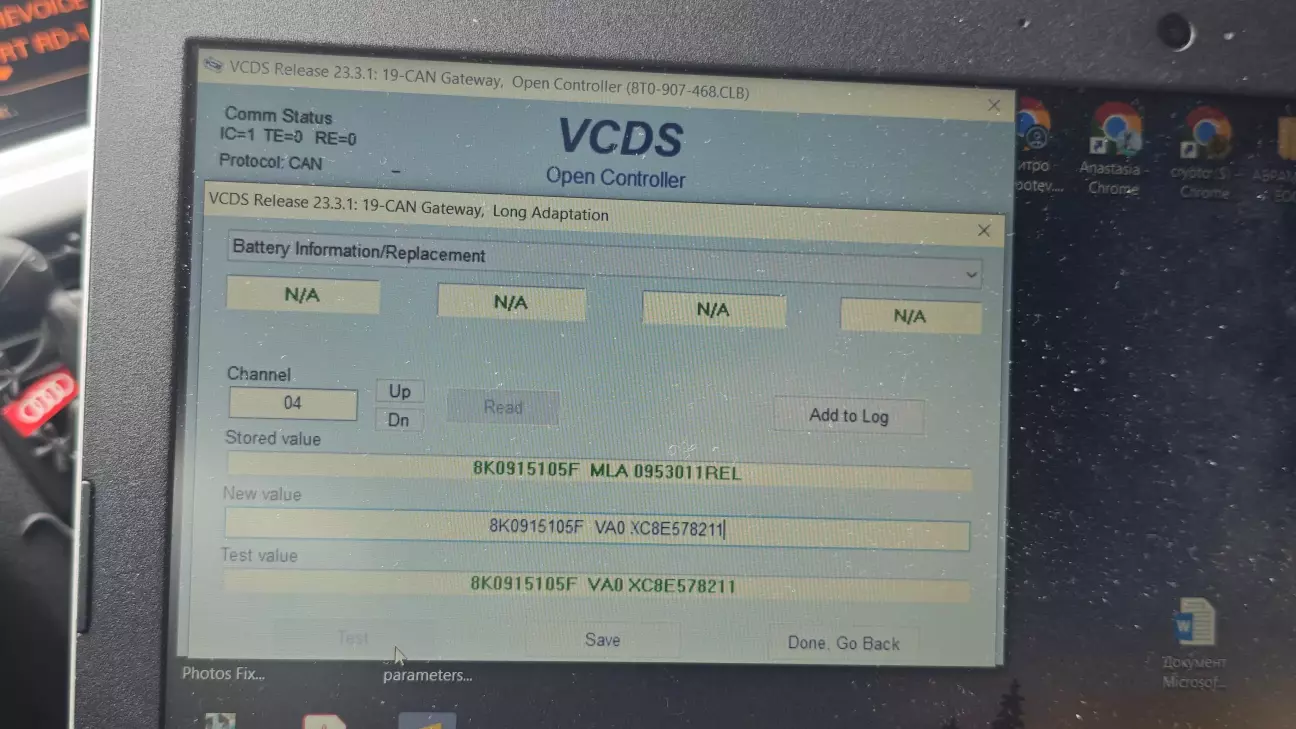 Хотел прописать вот такой вот код аккумулятора - 00091510DL, но его программа почему-то не принимала, в итоге оставил тот что был изначально - 8K0915105F