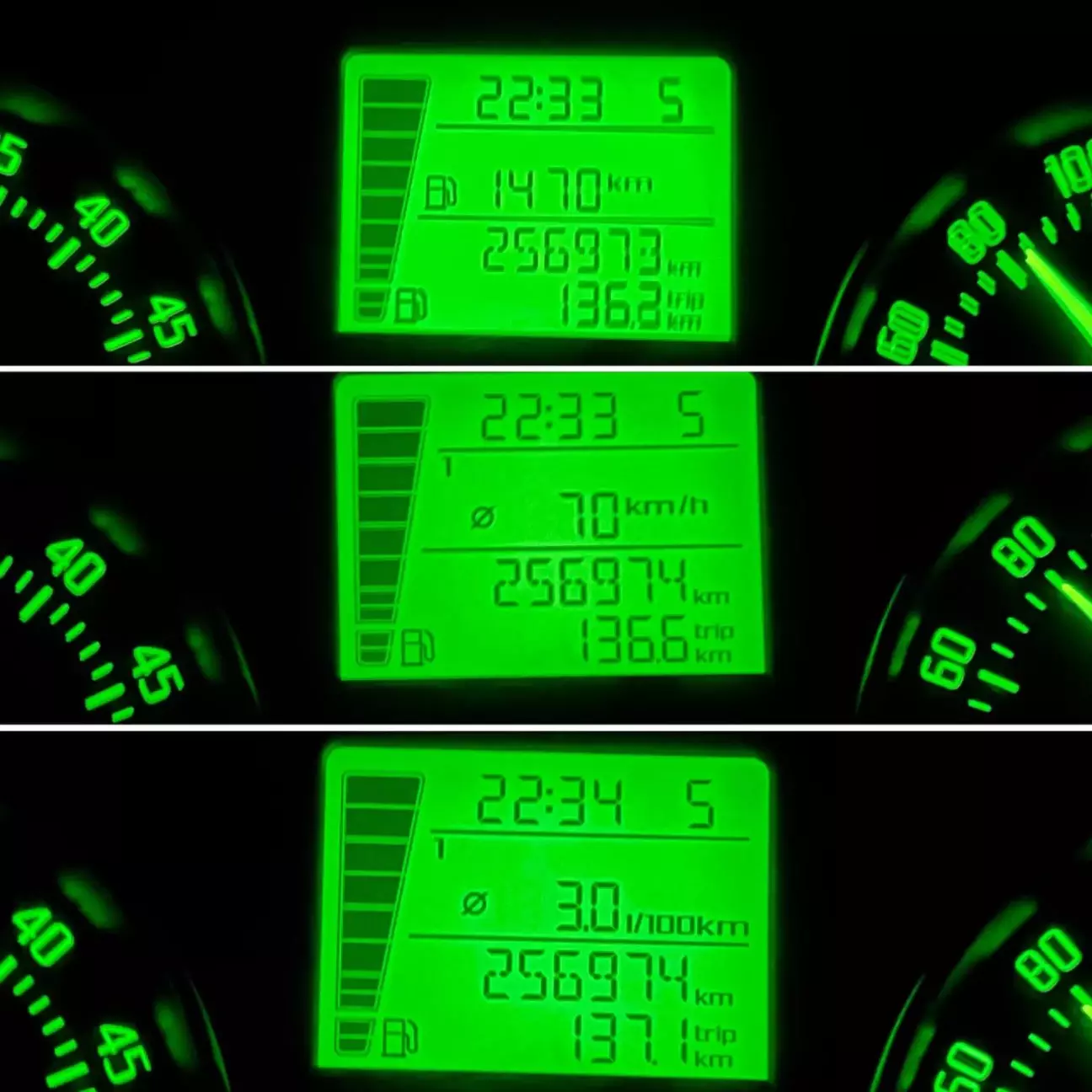 Как видим, по свободной и идеальной трассе при средней скорости 70 км/ч средний расход составил 3,0 л / 100 км.