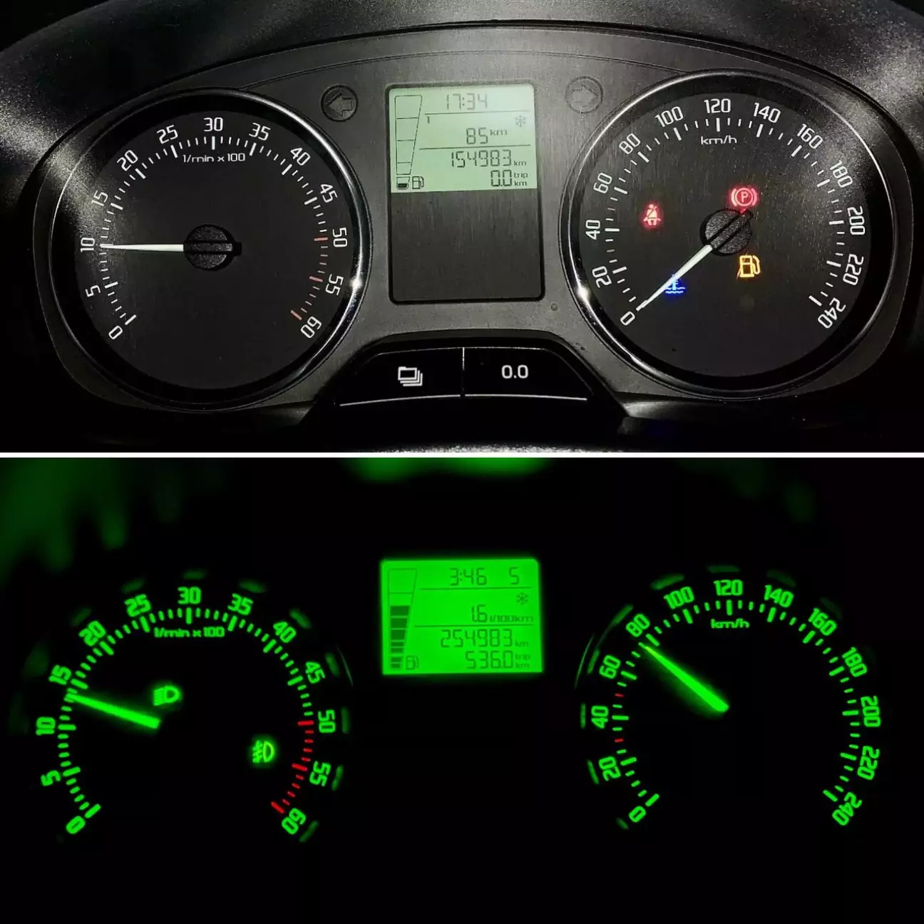 На момент покупки (06.02.2020) - 154 983 км, и сегодня (16.10.2025) - 254 983 км.