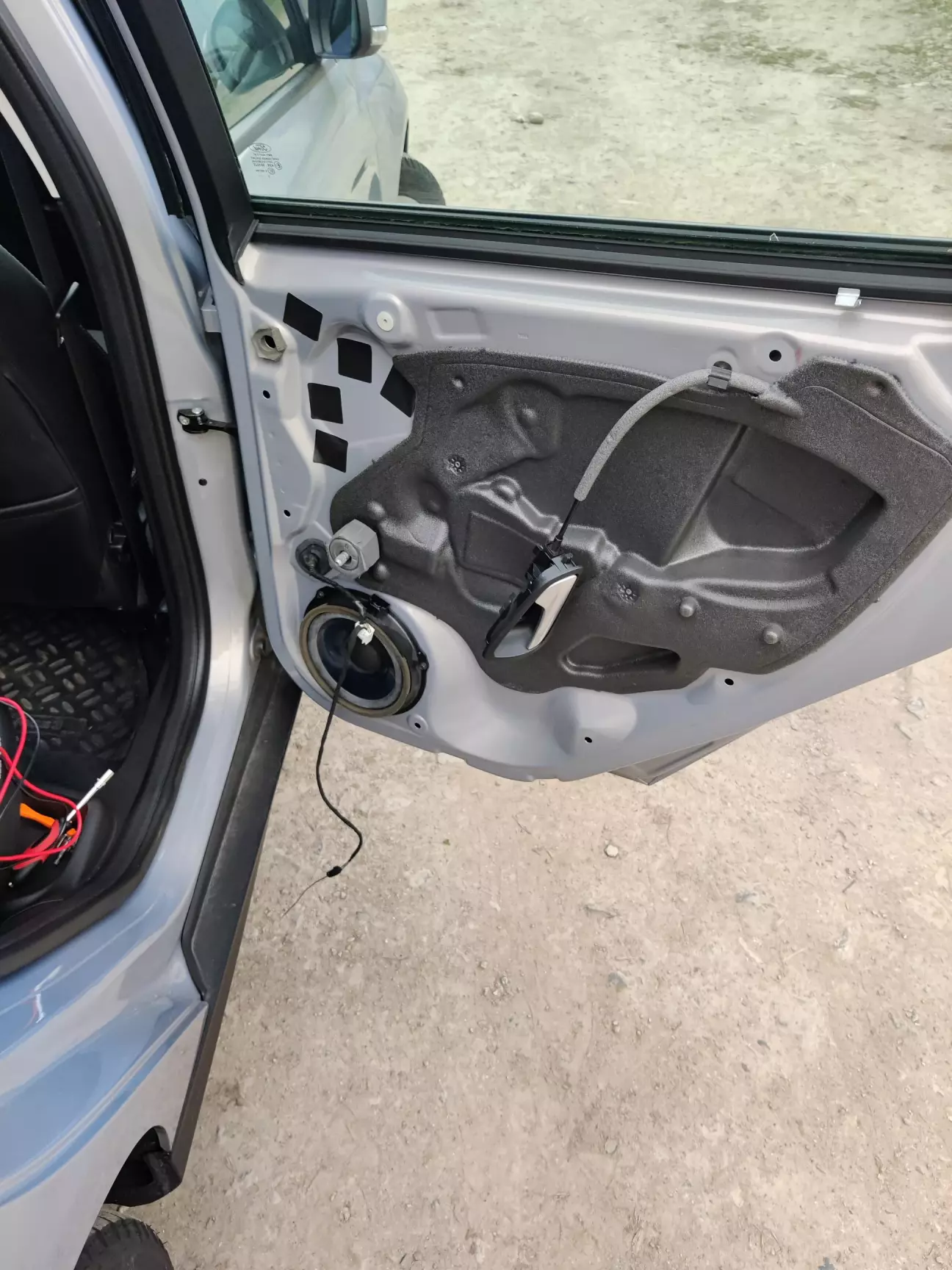 Якщо раптом ви не в курсі, як знімаються карти Фокуса, то там усе досить просто. Кожну тримають 4 гвинти та кліпси по колу. У передніх гвинти заховані: у торці (під катафотом), під заглушкою у ніші ручки відчинення дверей та ще 2 - за пластиковою фарбованою накладкою нижче панелі керування склопідйомниками. Далі просто піддіваємо карту знизу й відщолкуємо кліпси. Тут не бійтеся - Ford не VAG, і зламати кліпси чи пластик не вийде. У задніх гвинти: 1 на торці під заглушкою, 1 у ніші ручки, ще 2 - треба потягнути задню рукоятку зачинення дверей (ту, за яку беретеся руками) вгору, гвинти під нею. У моєму випадку додатково треба було зняти ще й ручки опускання скла - там звичайна скоба.