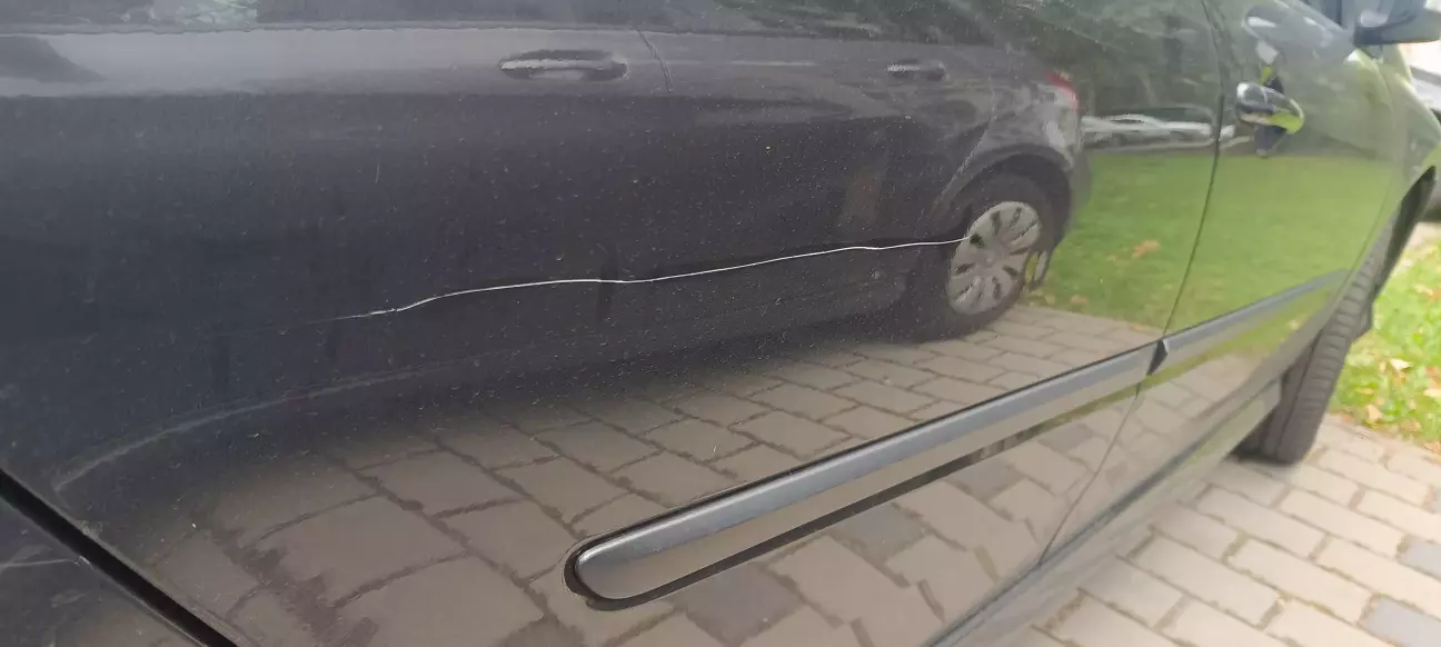 Це трапилося десь через 2 тижні, як я купив автомобіль . Було у нас у місті якесь свято і ми поїхали погуляти . Всі парковки були зайняті або перекриті. Запаркувались десь у дворі багатоповерхівки . Результати парковки - пошкодження задніх дверей з обох сторін на фото .