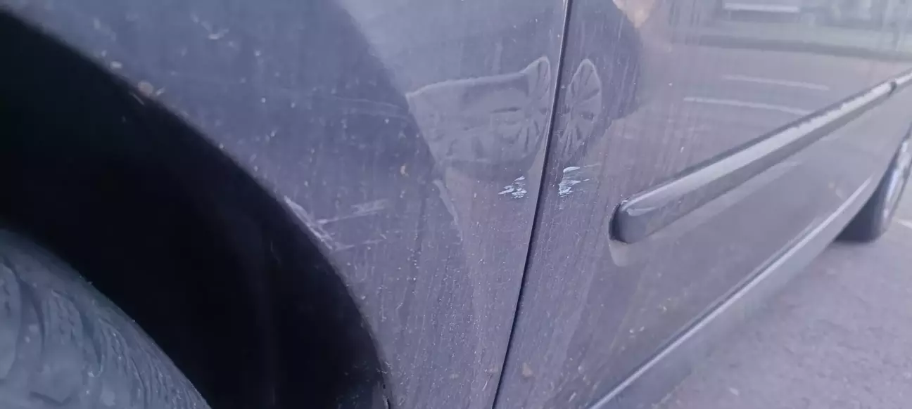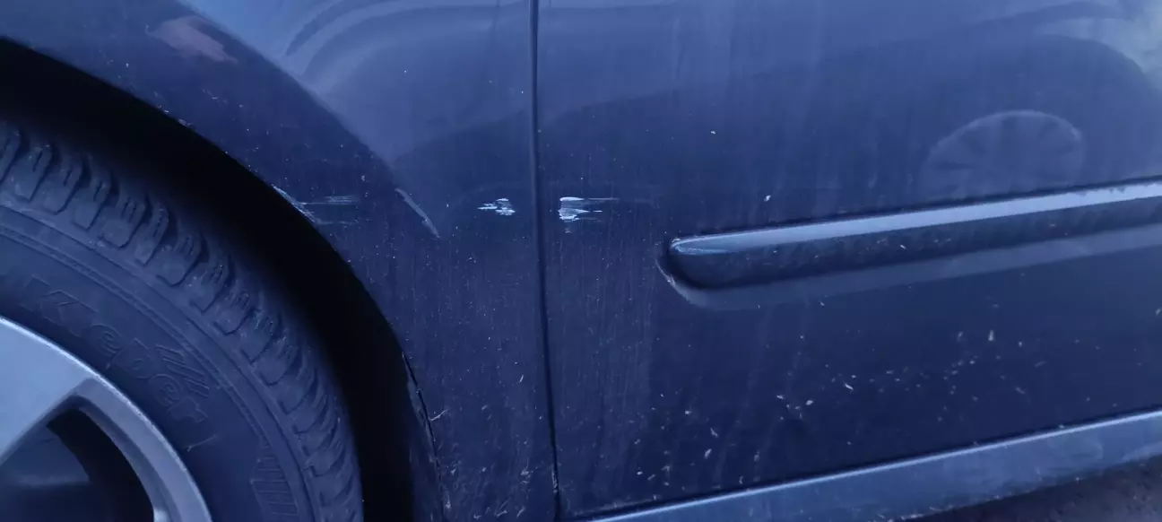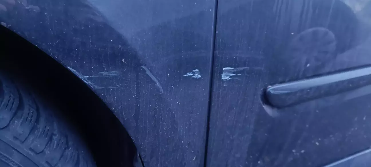 Водійська сторона , якась біла автівка з якоюсь поганою людиною потерла мені кузов і поїхала далі .